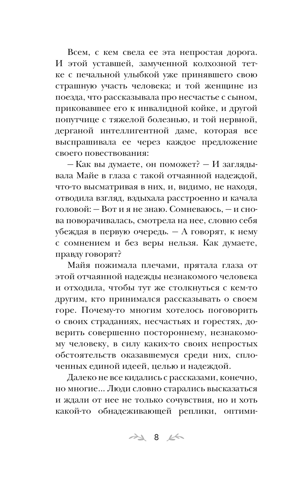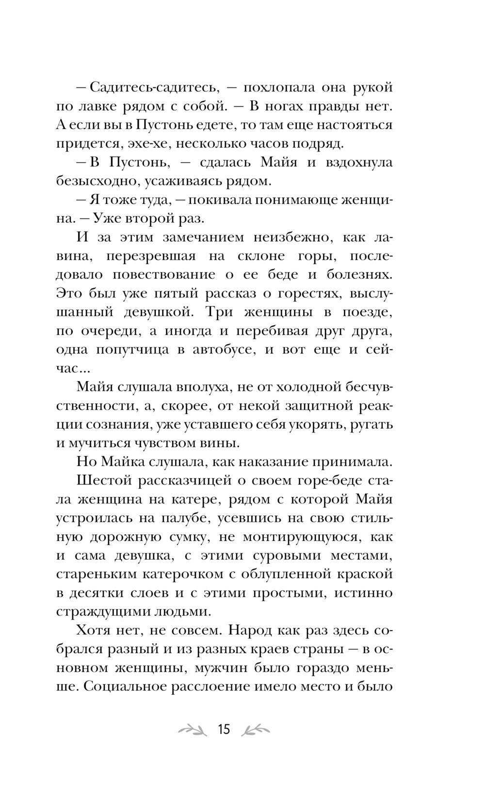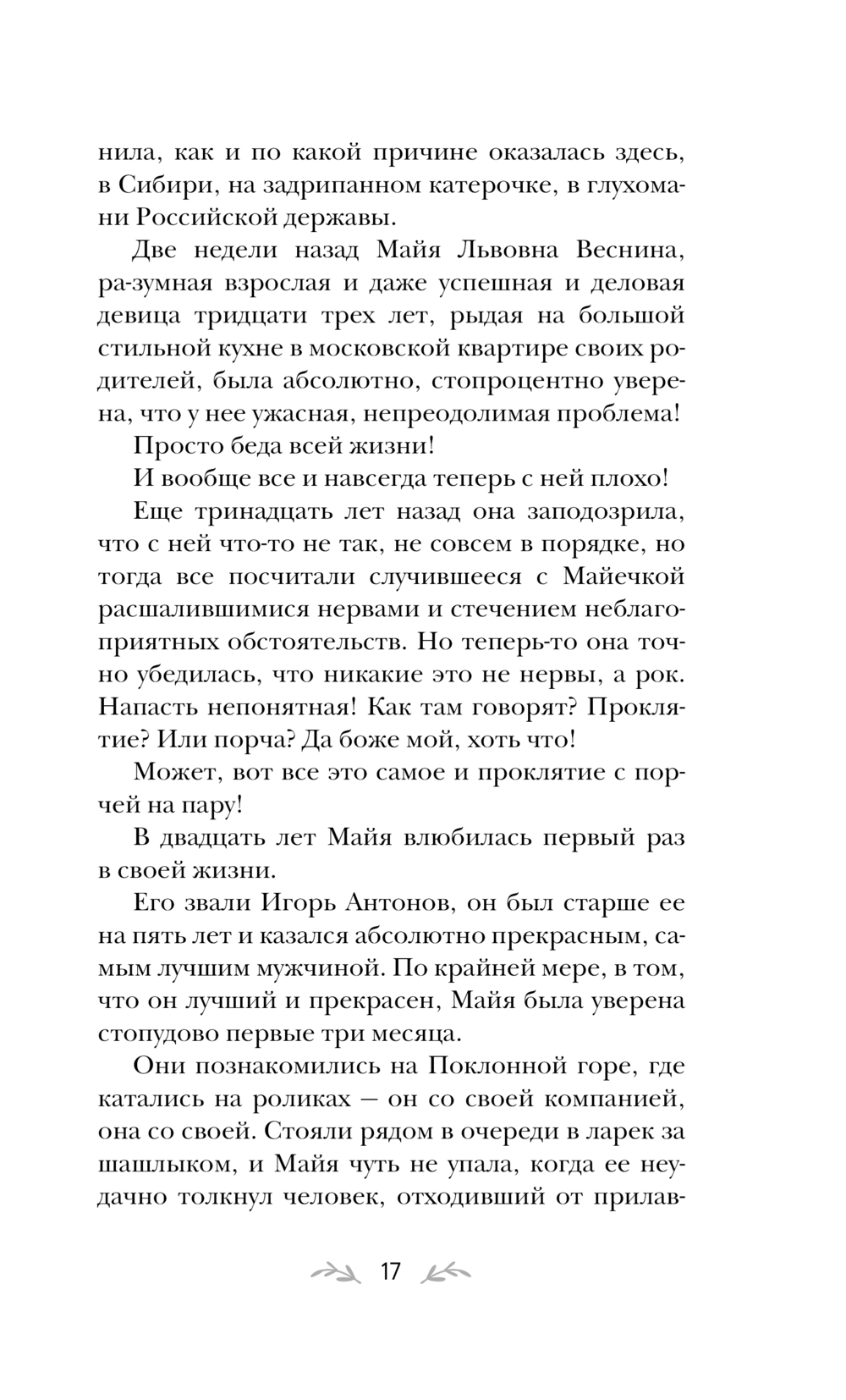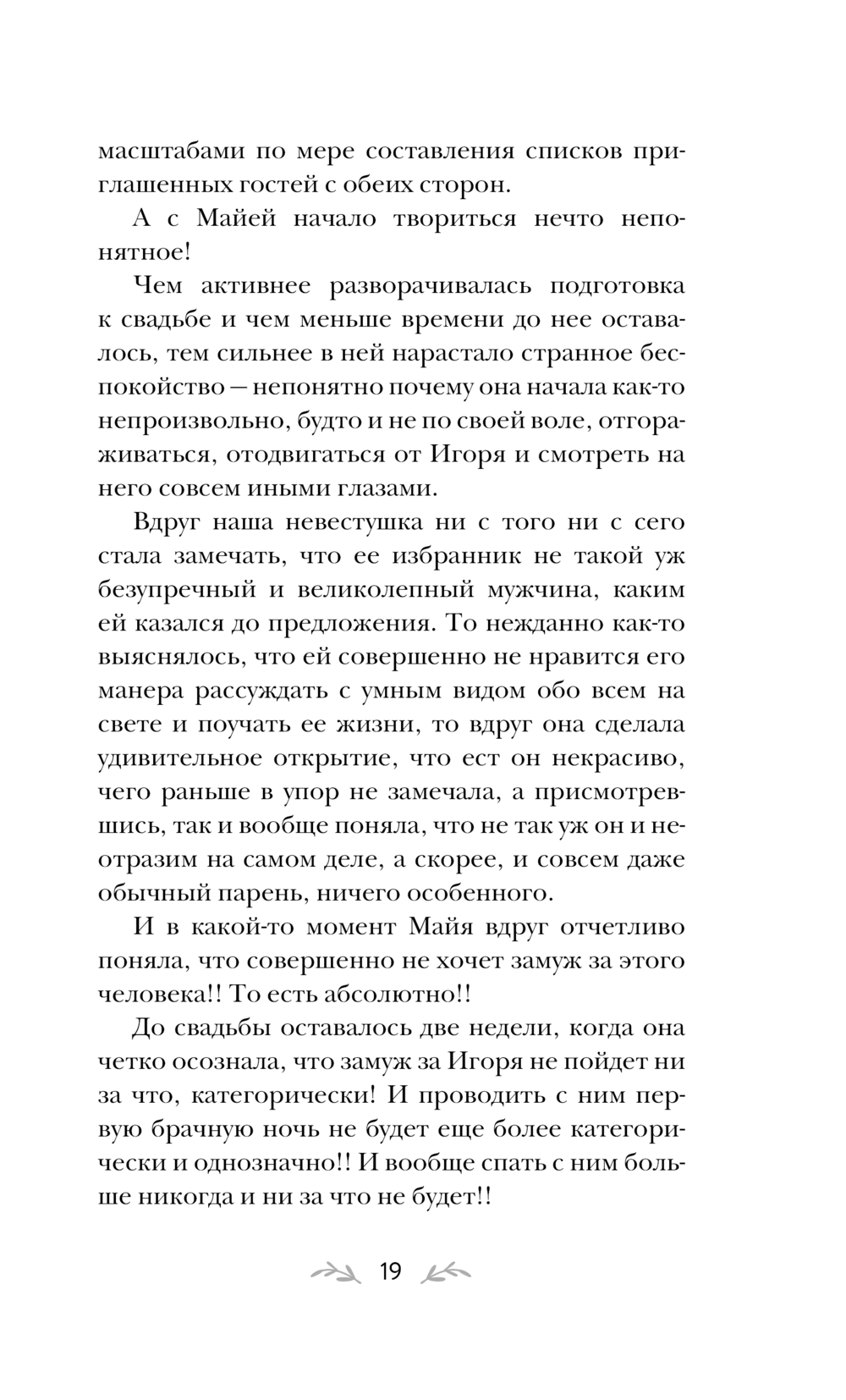 В двадцать лет Майя влюбилась. Все шло своим чередом – свидания, предложение руки и сердца, предсвадебные хлопоты... Было заказано чудесное платье, но чем ближе к свадьбе, тем больше нервничала девушка, уже переставшая понимать, что, собственно, она нашла в женихе. Майя сбежала буквально из-под венца. А через пять лет история повторилась, и еще через несколько лет – снова то же. Пытаясь разобраться, что же с ней не так и откуда взялся синдром сбежавшей невесты, девушка отправилась в паломничество в Пустонь. Там и ждала ее нечаянная радость...