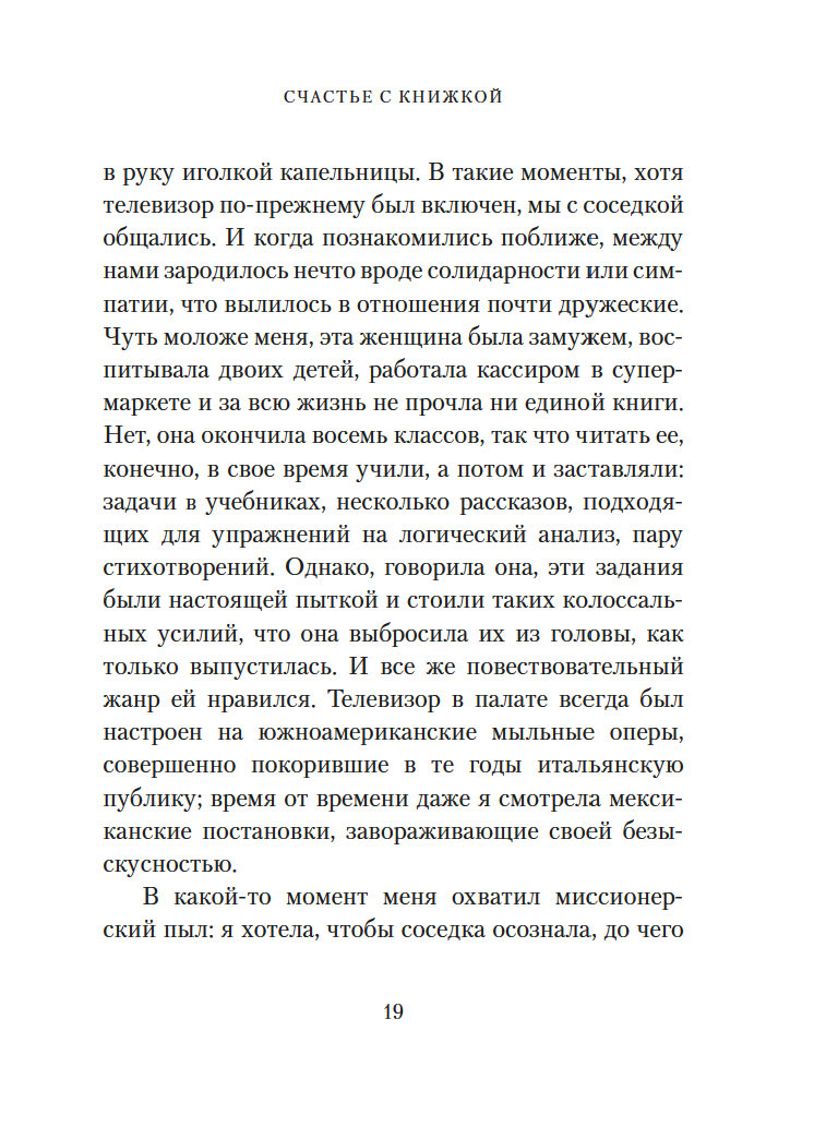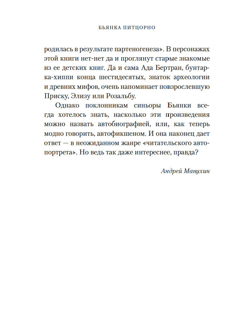 Автор делится тем, что ценит не меньше, чем способность писать – даром читателя. Питцорно выросла в большой семье заядлых читателей, где всё прочитанное было темой для громких итальянских разговоров и поводом для шуток. Книга дарит возможность по-новому или впервые пережить великие истории, вошедшие в "золотой запас" человечества, многие из которых мало известны в России.