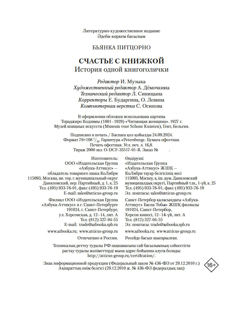 | Изготовитель | ООО "Издательство "Иностранка". 109017, РФ, г. Москва, ул. Пятницкая, 41 |