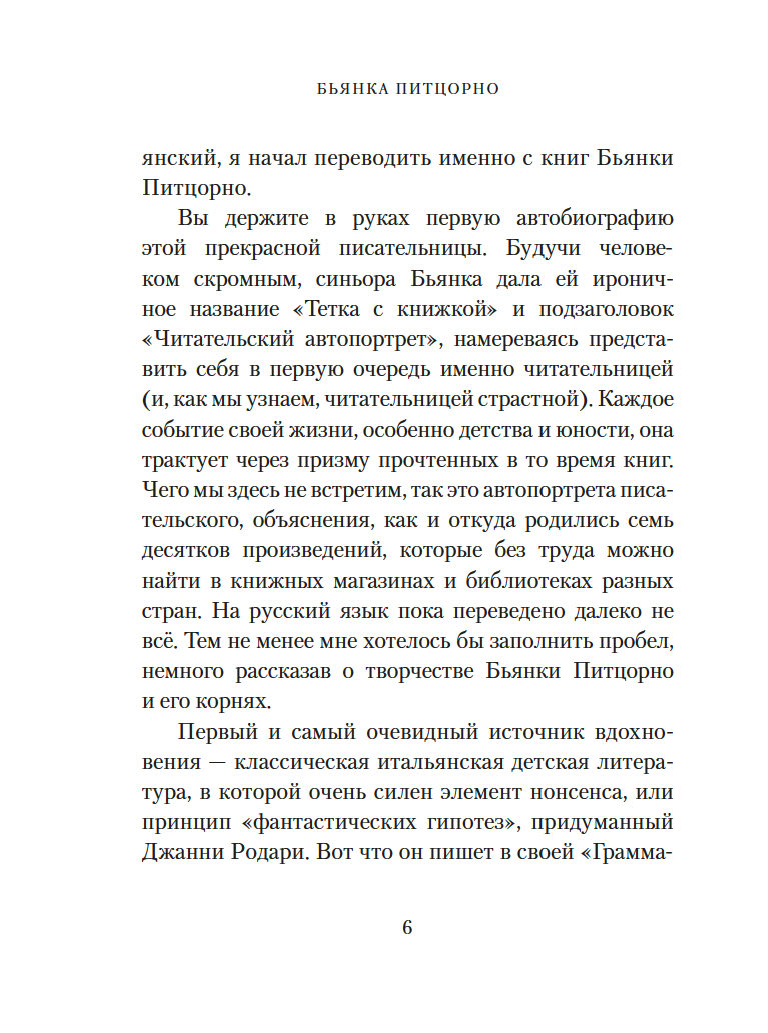 Итальянская писательница Бьянка Питцорно (р. 1942) сегодня входит в число самых популярных детских авторов в мире. В России ее знают в основном по книжкам "Послушай мое сердце" и "Французская няня". В новой книге Питцорно рассказывает историю о самой себе. Но книги и герои всегда в ее жизни занимали почти такое же важное место, как друзья и родственники, поэтому автобиография Питцорно – это рассказ и о самых лучших книжках на свете.