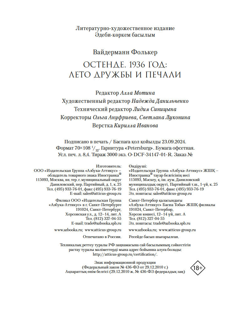| Изготовитель | ООО "Издательство "Иностранка". 109017, РФ, г. Москва, ул. Пятницкая, 41 |