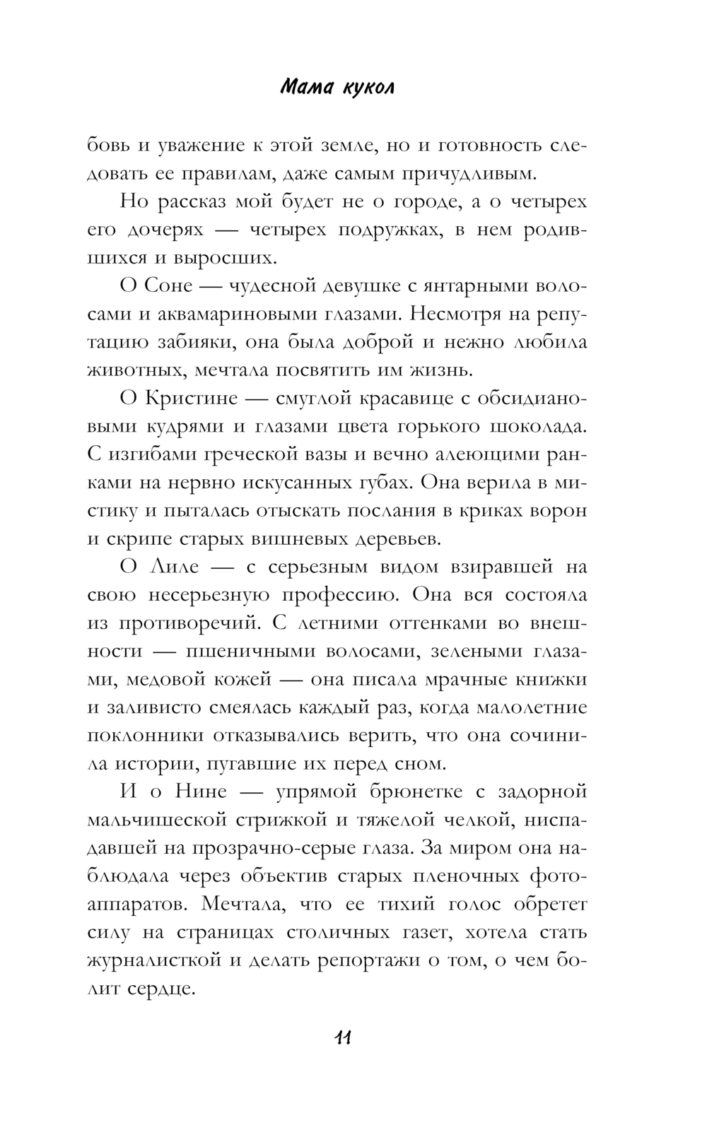 В таинственном городке, окутанном легендами и затерянном среди лесов, происходят странные вещи. У Нины пропадает сестра Эля, талантливая скрипачка. Ходят слухи, что виновна некая Брукса. Женщина с туловищем человека и лошадиными копытами. Нине предстоит выяснить, что произошло век назад, когда в городе появилась цыганка-кукольница Роза, наводившая страх на всю округу. Так чем же обернутся поиски и что в итоге станет с Ниной и её семьей? Сможет ли девочка вернуть сестру или окажется жертвой мамы кукол?