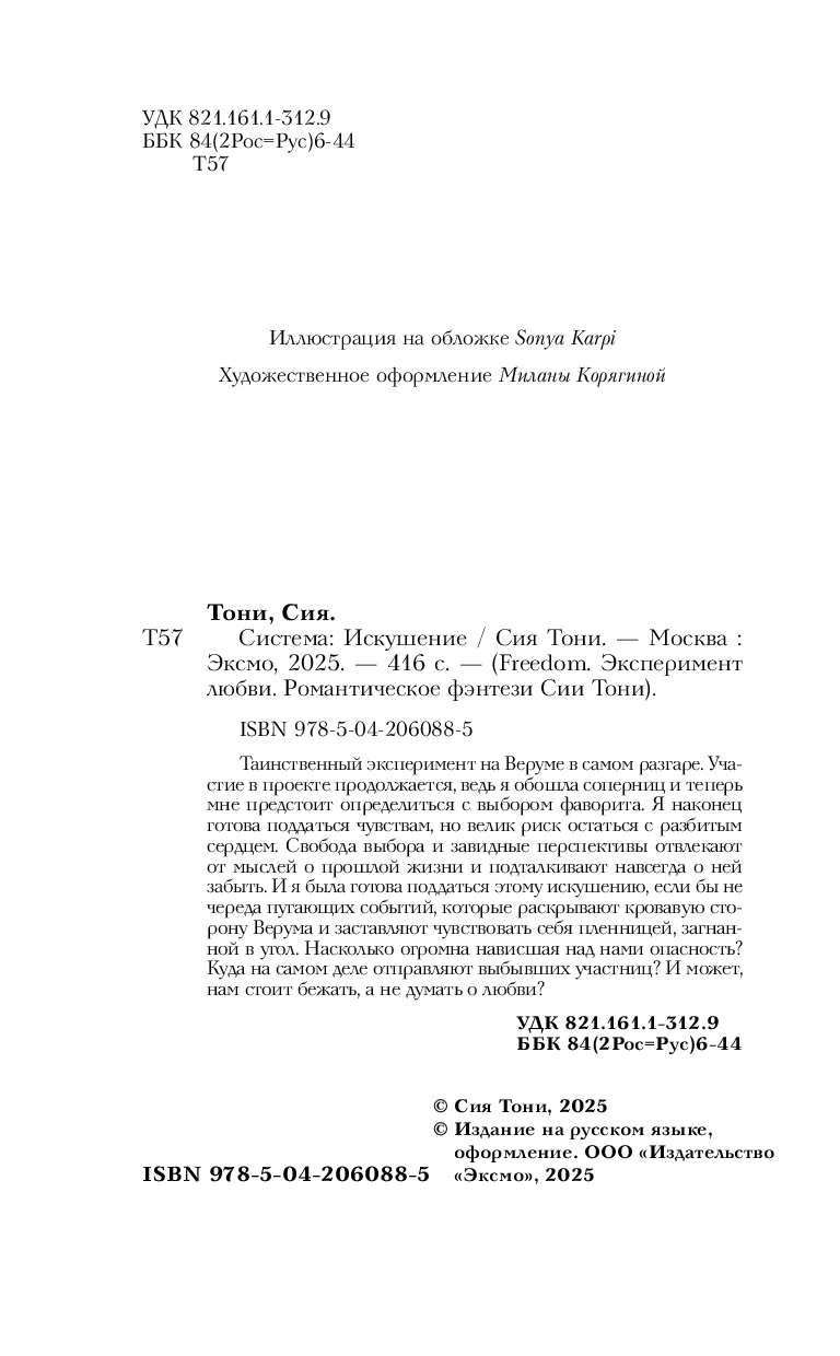 | Серия | Freedom. Эксперимент любви. Романтическое фэнтези Сии Тони |