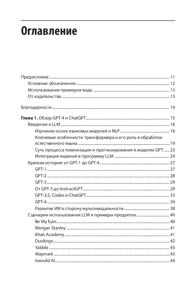 Эта небольшая книга представляет собой подробное руководство для разработчиков на Python, желающих научиться создавать приложения сс использованием больших языковых моделей. Авторы расскажут об основных возможностях и преимуществах моделей GPT-4 и GPT-3.5, а также принципах их работы. Здесь же вы найдете пошаговые инструкции по разработке приложений с использованием библиотеки для Python от OpenAI, в том числе инструментов для генерирования текста, отправки вопросов и получения ответов и создания интеллектуальных ассистентов.