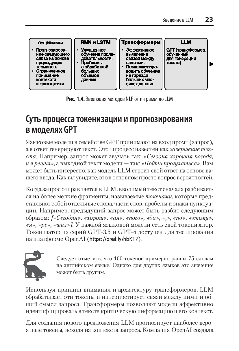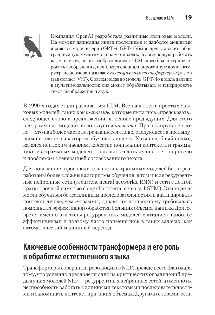 Издание содержит множество легковоспроизводимых примеров, которые помогут применить модели в своих проектах. Все примеры кода на Python доступны в репозитории GitHub. Решили использовать возможности LLM в своих приложениях? Тогда вы выбрали правильную книгу.