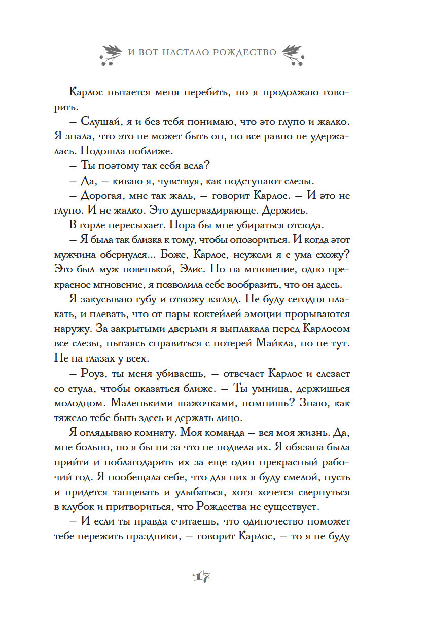 Роуз, к примеру, сторонится Рождества. Все эти подарки, поздравления, суета – для тех, кто заслужил быть счастливым. И точно не для нее. Чарли тоже невыносима мысль о Рождестве. Какой в нем толк, если в опустевшем доме не с кем смотреть любимые фильмы и накрывать праздничный стол?