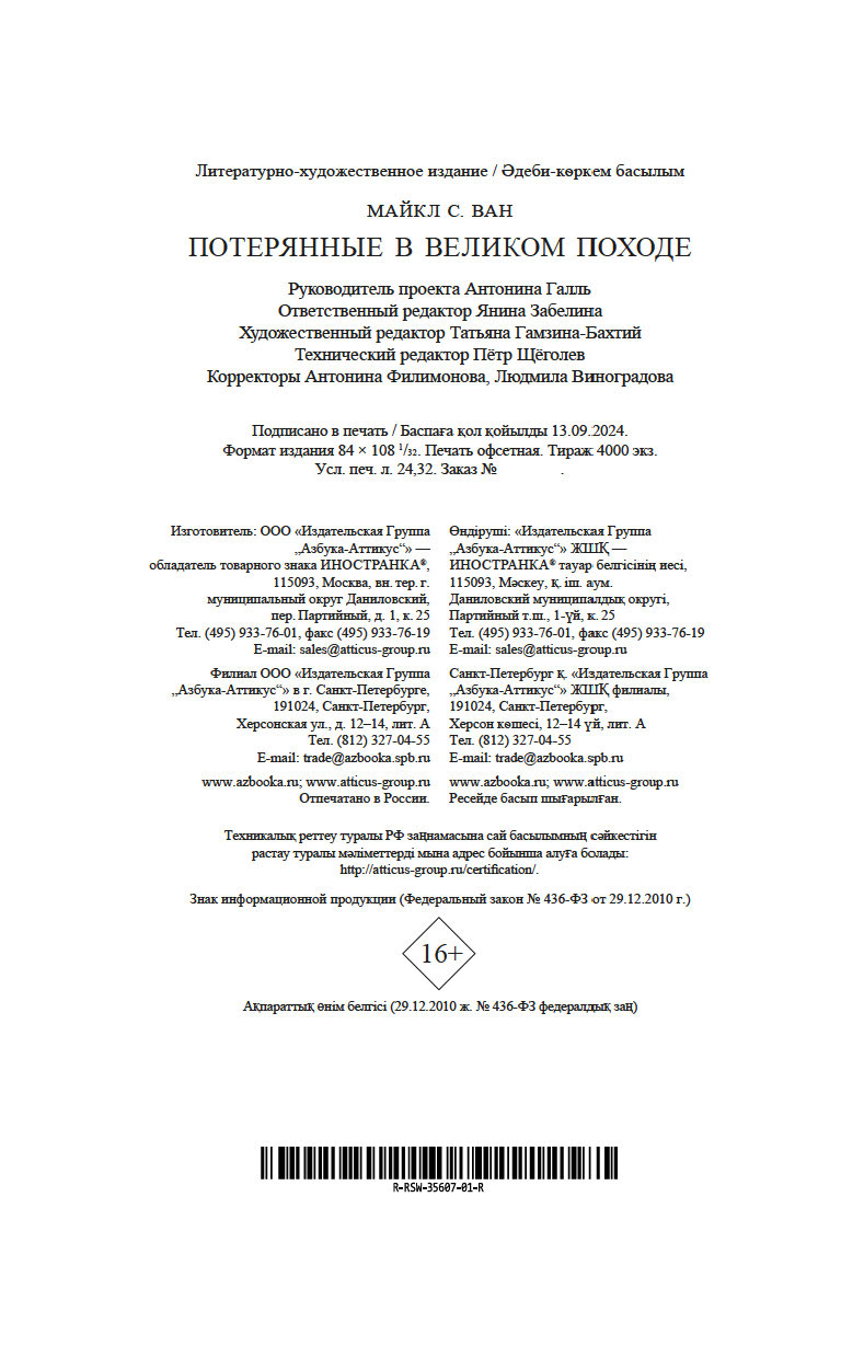 | Изготовитель | ООО "Издательство "Иностранка". 109017, РФ, г. Москва, ул. Пятницкая, 41 |