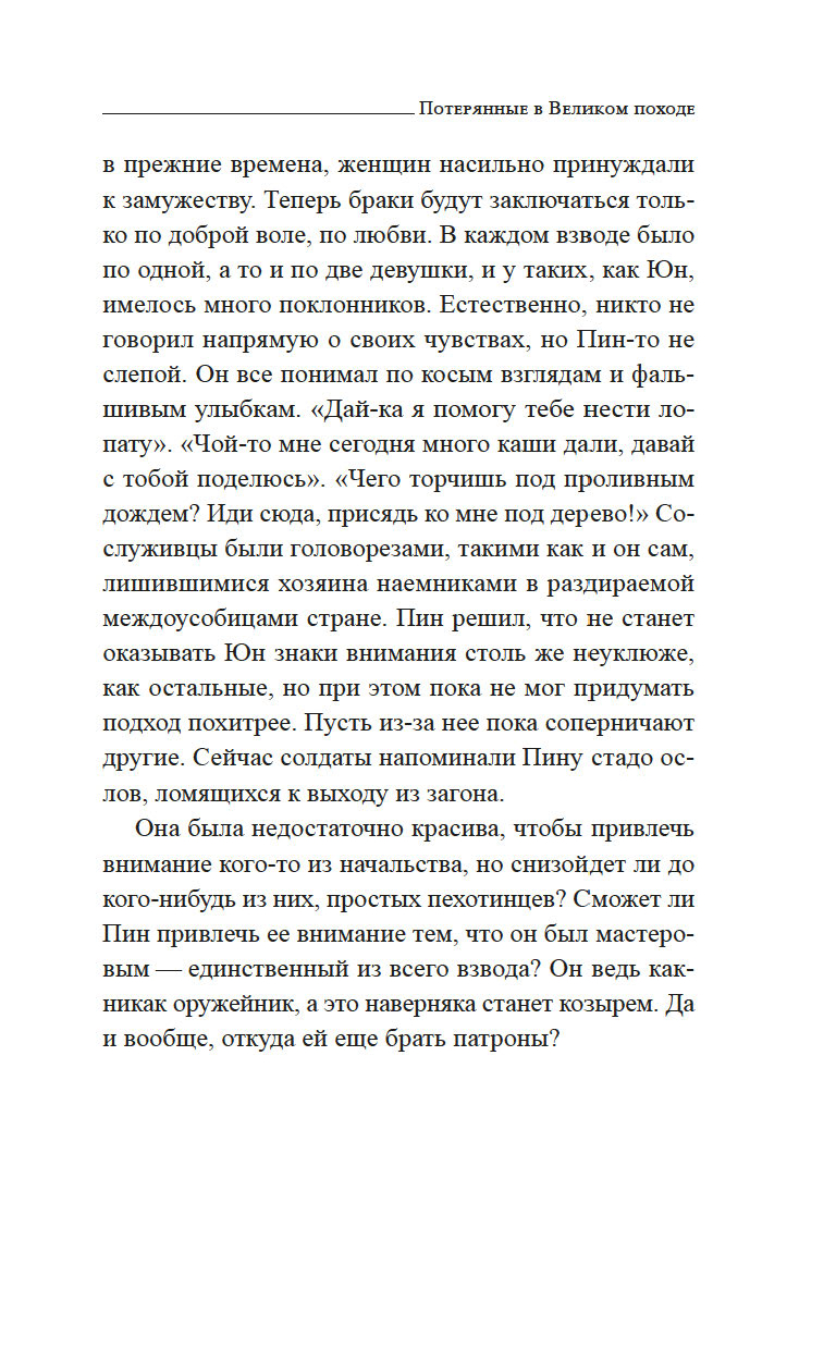 Эпический и глубоко национальный роман, действие которого начинается на фоне годичного отступления Красной армии Китая, названного позже Великим походом, повествует о полной превратностей жизни солдат Великого Председателя Мао.