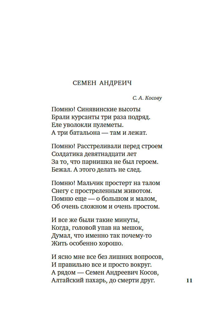 Давид Самойлов – крупнейший советский поэт "из поздней пушкинской плеяды", один из самых ярких представителей поколения фронтовиков, творческий путь которого во многом определила Великая Отечественная война. Однако значительная часть стихов, написанных в годы войны, увидела свет лишь после смерти автора, открыв новые грани в творчестве поэта. Первый стихотворный сборник был опубликован только в 1958 году и с интересом принят читателями. За ним последовали и другие книги, и имя Давида Самойлова прочно утвердилось в ряду наиболее значительных поэтов эпохи. Пушкинская глубина и прозрачность в его творчестве соединились с безупречной отточенностью формы и мысли, а тема внутренней свободы и лирико-философское звучание многих стихов определили их связь с классической русской поэзией. В настоящем сборнике представлены избранные стихотворения, написанные в разные годы; в издание также включен раздел поэтических произведений, которые при жизни автора не публиковались.