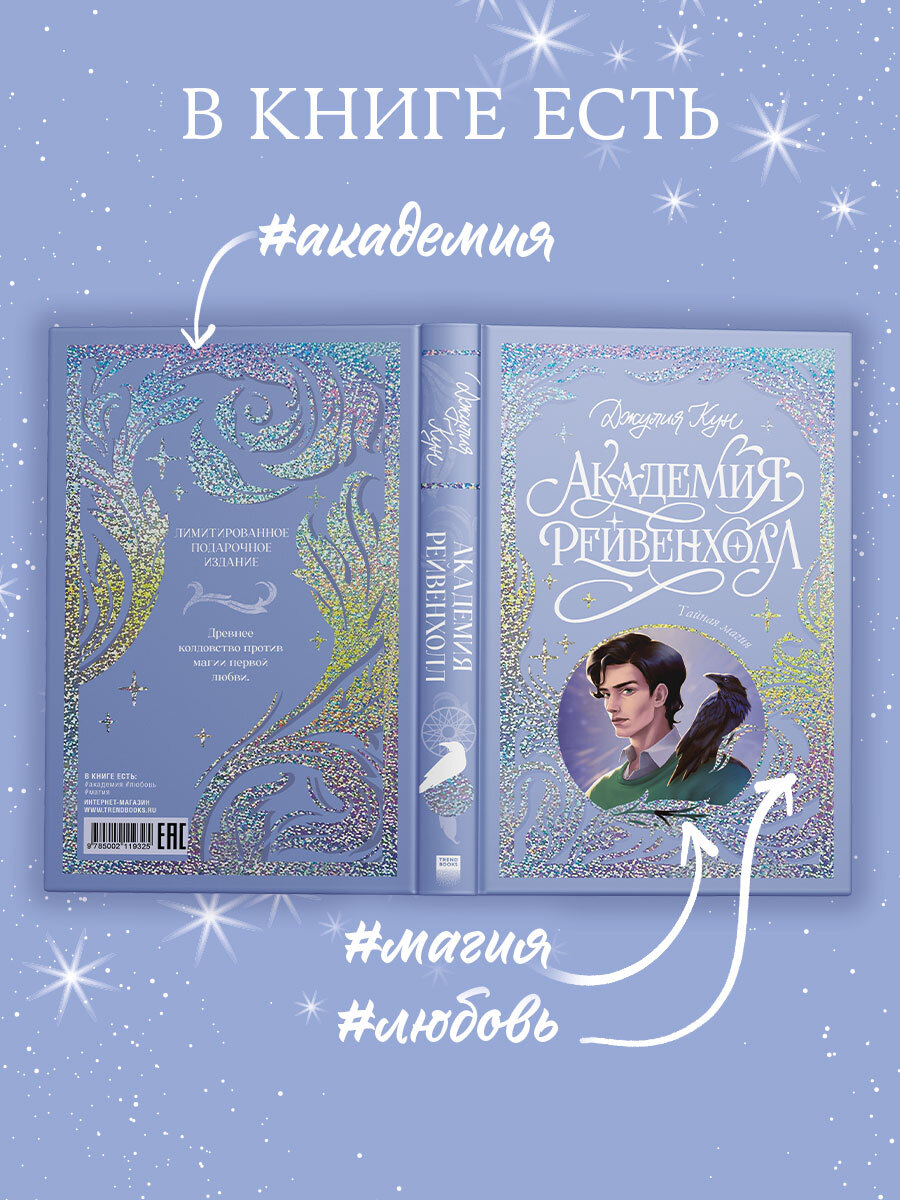 "Академия Рейвенхолл. Тайная магия" – фэнтези о первой любви и магии, тайнах прошлого и волшебной школе в чарующем подарочном издании из лимитированной коллекции "Трендбукс" с иллюстрацией Наили Бикмухаметовой.