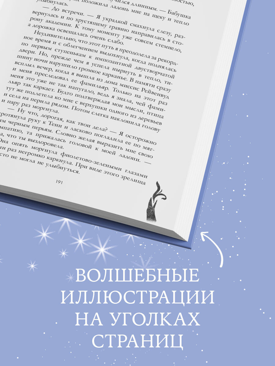 "Академия Рейвенхолл. Тайная магия" – уютная сказка для взрослых, которая очарует поклонников фэнтези характерами персонажей, сильными чувствами и тайнами древнего колдовства. Коллекционное издание романа о юной ведьме – стильное дополнение к любой книжной коллекции. Яркая обложка с мерцающими элементами дополняет и украшает историю, а волшебные иллюстрации на уголках белоснежных страниц делают оформление книги изысканным и утонченным.