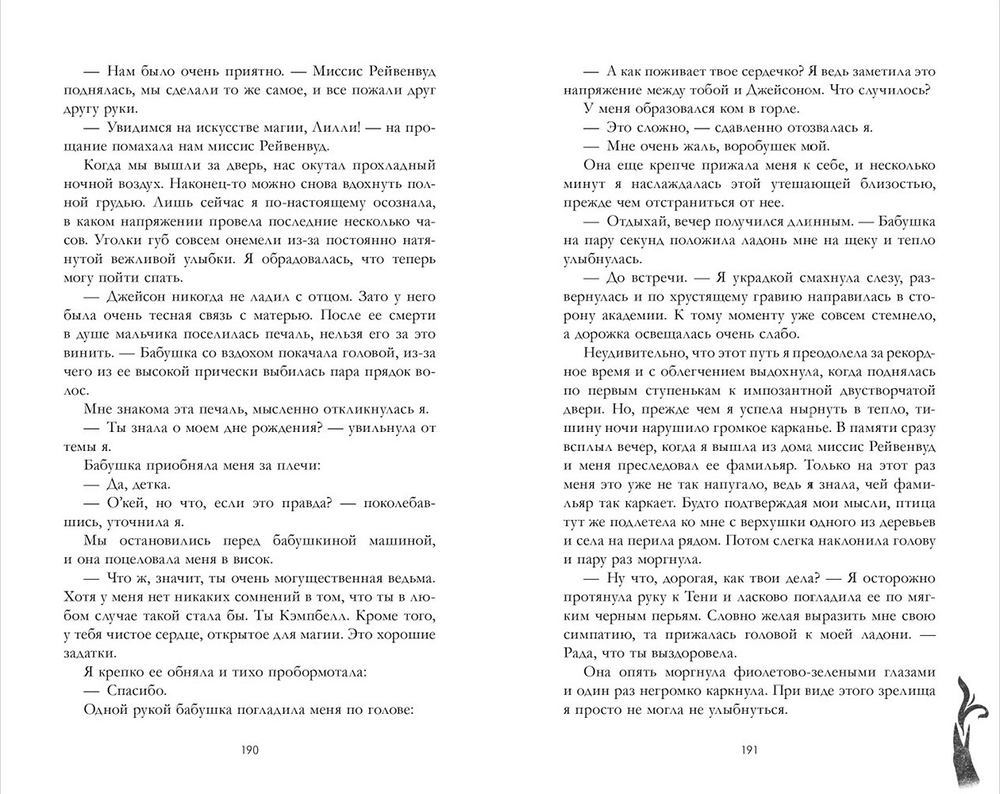 Лилли Кэмпбелл росла в обычной семье и после школы собиралась поступить в колледж. Любимая семья, сестра-близняшка, друзья, собака – жизнь ничем не примечательного подростка заканчивается, когда девушка замечает ворона с разноцветными глазами, который всюду преследует ее. Оказывается, Лилли – ведьма из семьи могущественных магов. Древняя сила передается в ее роду из поколения в поколение, и вот уже Лилли учится в академии Рейвенхолл – лучшем учебном заведении для всех ведьм и колдунов, но ничего не знает о фамильярах, заклинаниях и темных ритуалах. Зато словно магнитом притягивает неприятности и особенно холодный взгляд Джейсона Рейвенвуда, потомка основателя академии. Получится ли у Лилли найти виновника трагических происшествий в академии и путь к сердцу неприступного наследника?
