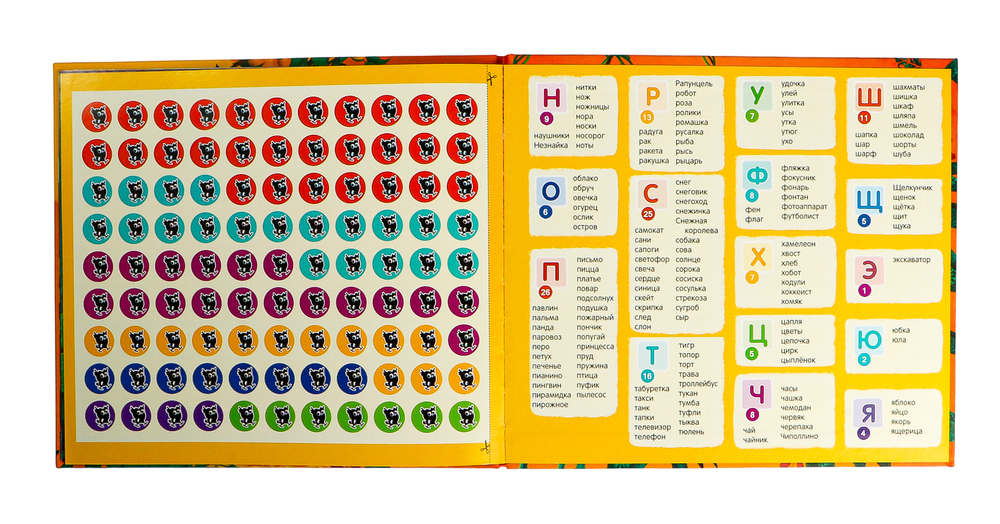 Рассматривай рисунки, находи, какие из них начинаются на нужные буквы, и считай их. Для удобства подсчёта накрывай найденные картинки цветными кружочками. Проверить себя ты сможешь на последних страницах книги.