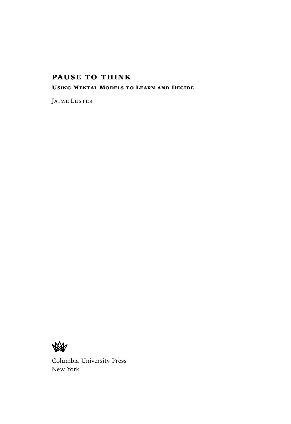 | Название в оригинале | Pause to Think Using Mental Models to Learn and Decide Jaime Lester |
