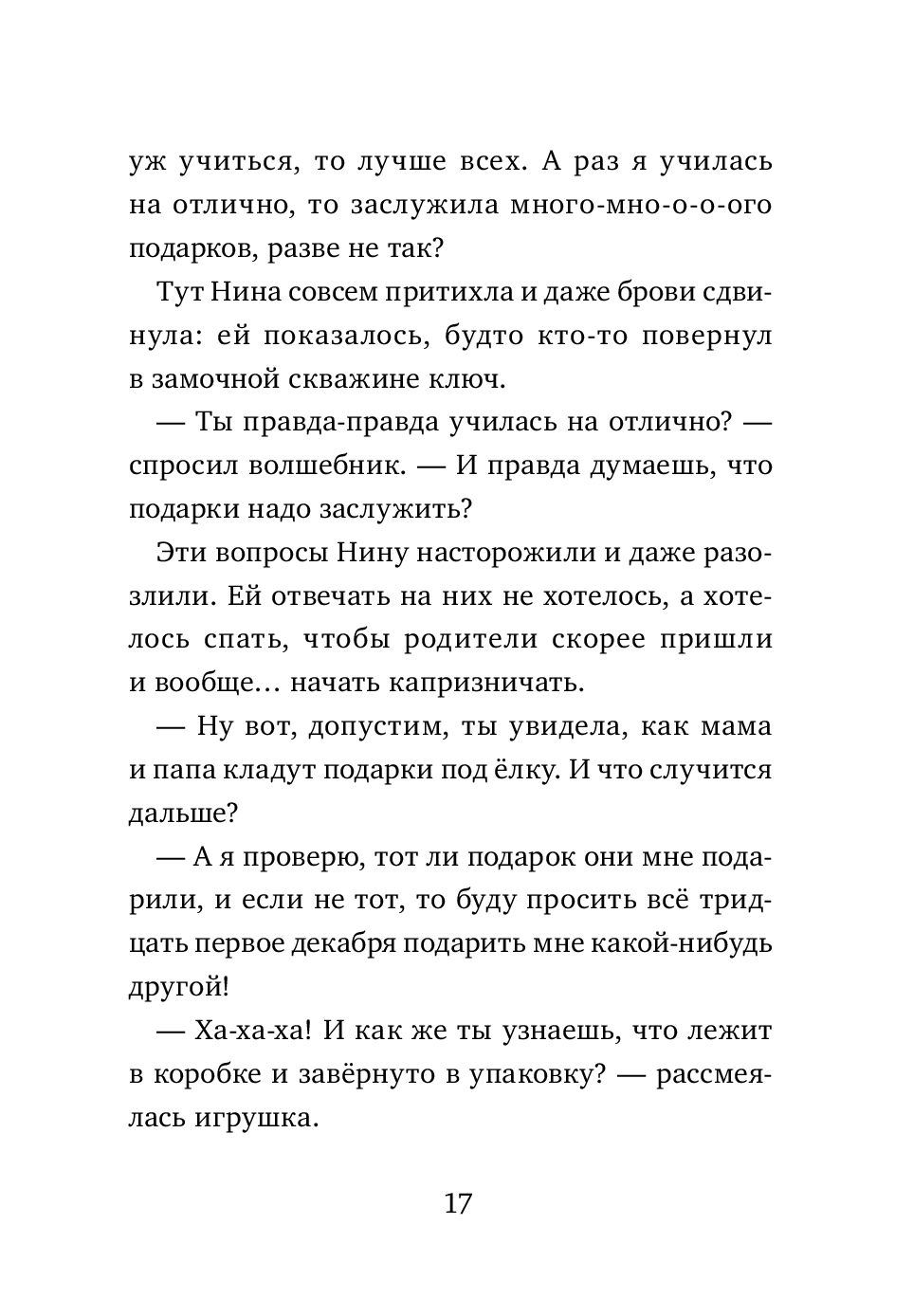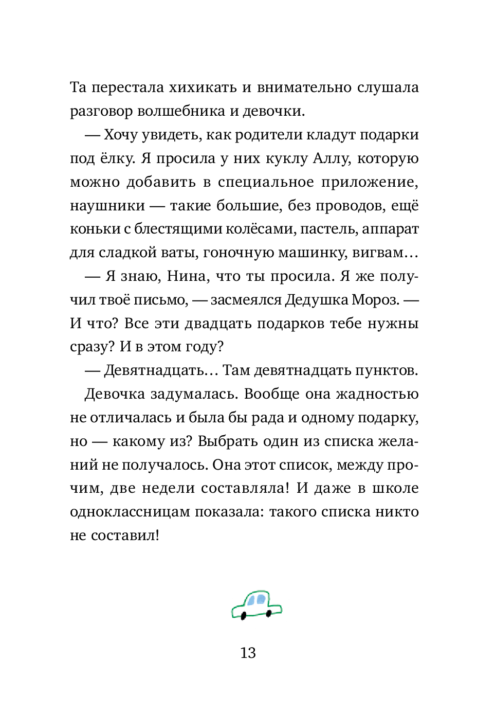 Восьмилетняя Нина мечтает о куклах, коньках и... автомобиле на пульте управления. Накануне Нового года она караулит родителей под ёлкой. Случайно девочка разбивает старинную игрушку – и с этого момента каждый день превращается в 1 января! Ей дарят самые желанные подарки, вот только... наутро они исчезают! Разгадка тайны – в осколках разбитой игрушки и честном ответе на вопрос: "О чём действительно мечтает Нина?"