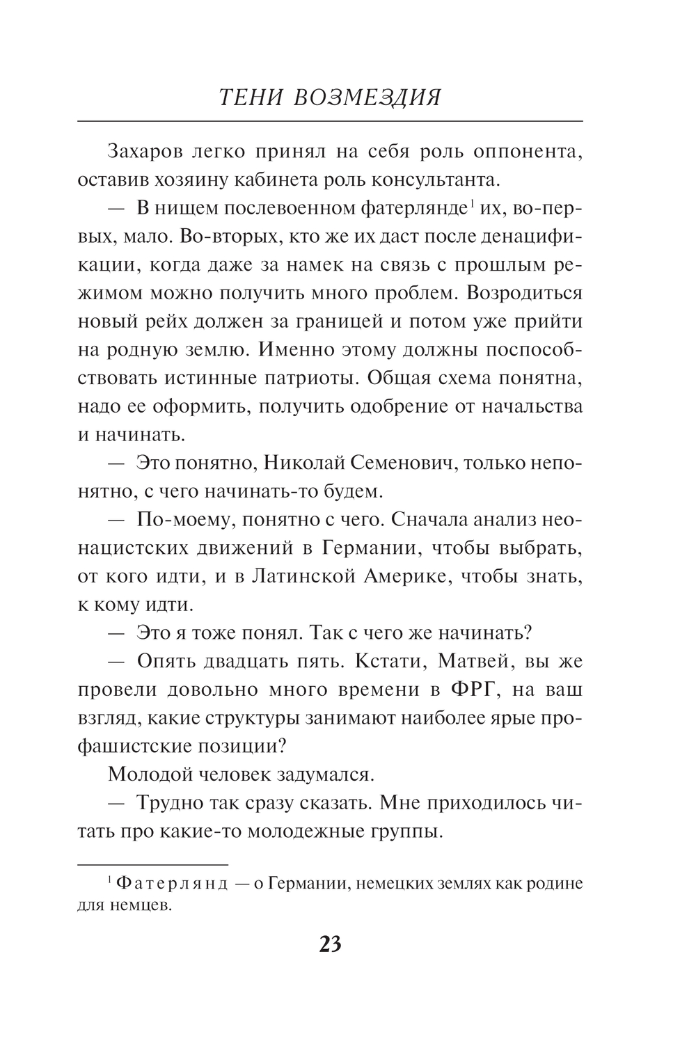 1950-е годы. Советская внешняя разведка активно работает по выявлению неофашистских организаций. В европейских странах их или нет совсем, или они находятся под опекой ЦРУ. Внимание оперативников привлекает Латинская Америка. Именно там осело большинство сбежавших от правосудия военных преступников, и именно оттуда может начать свое возрождение Четвертый рейх.