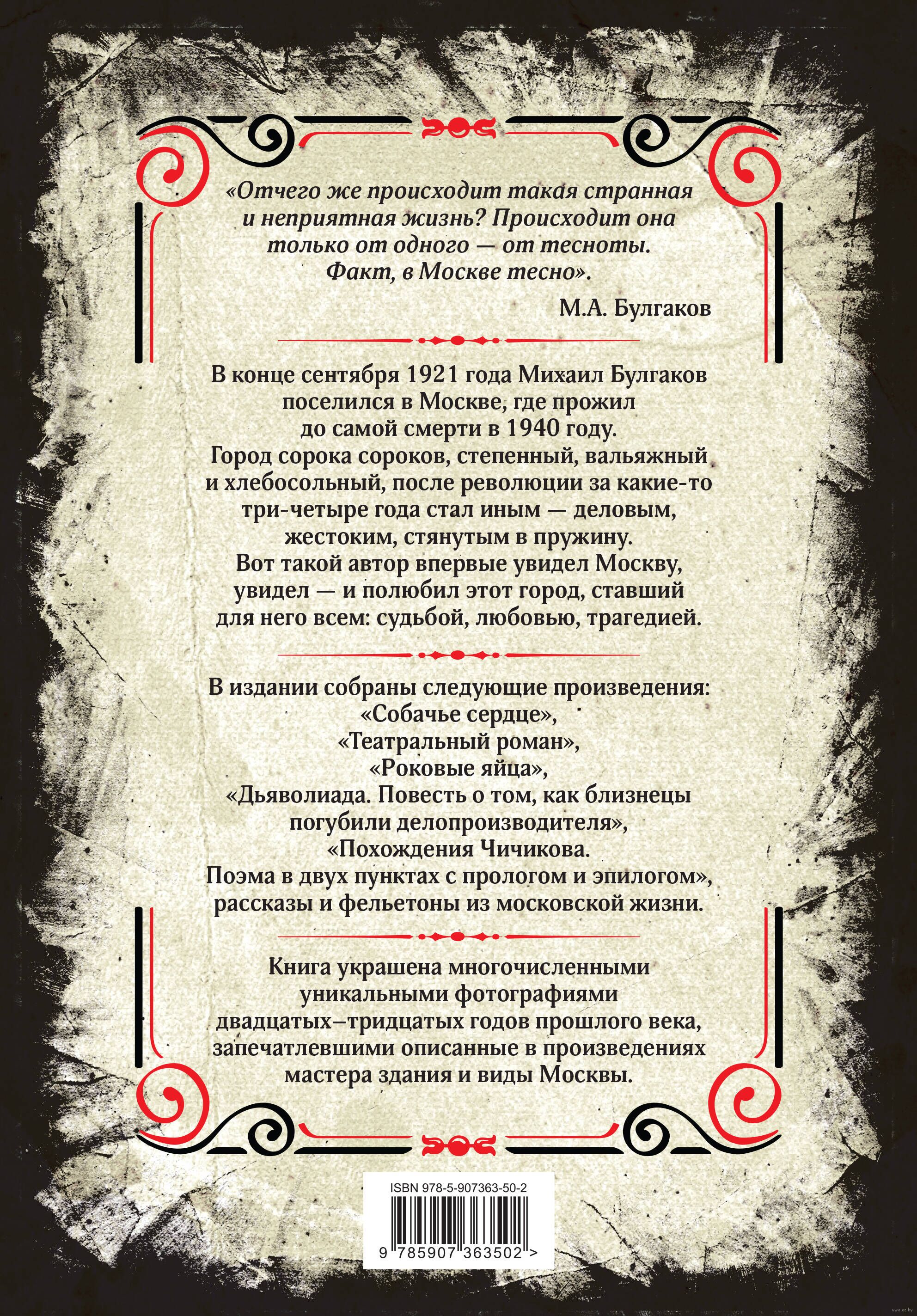 Книга украшена многочисленными уникальными фотографиями двадцатых-тридцатых годов прошлого века, запечатлевшими описанные в произведениях мастера здания и виды Москвы.