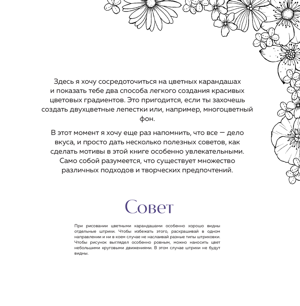 Эта книга – отличная возможность не только насладиться процессом раскрашивания цветов всех сортов, но и открыть для себя уникальные техники, познать значение тени и света и воспользоваться авторскими методами колористики.