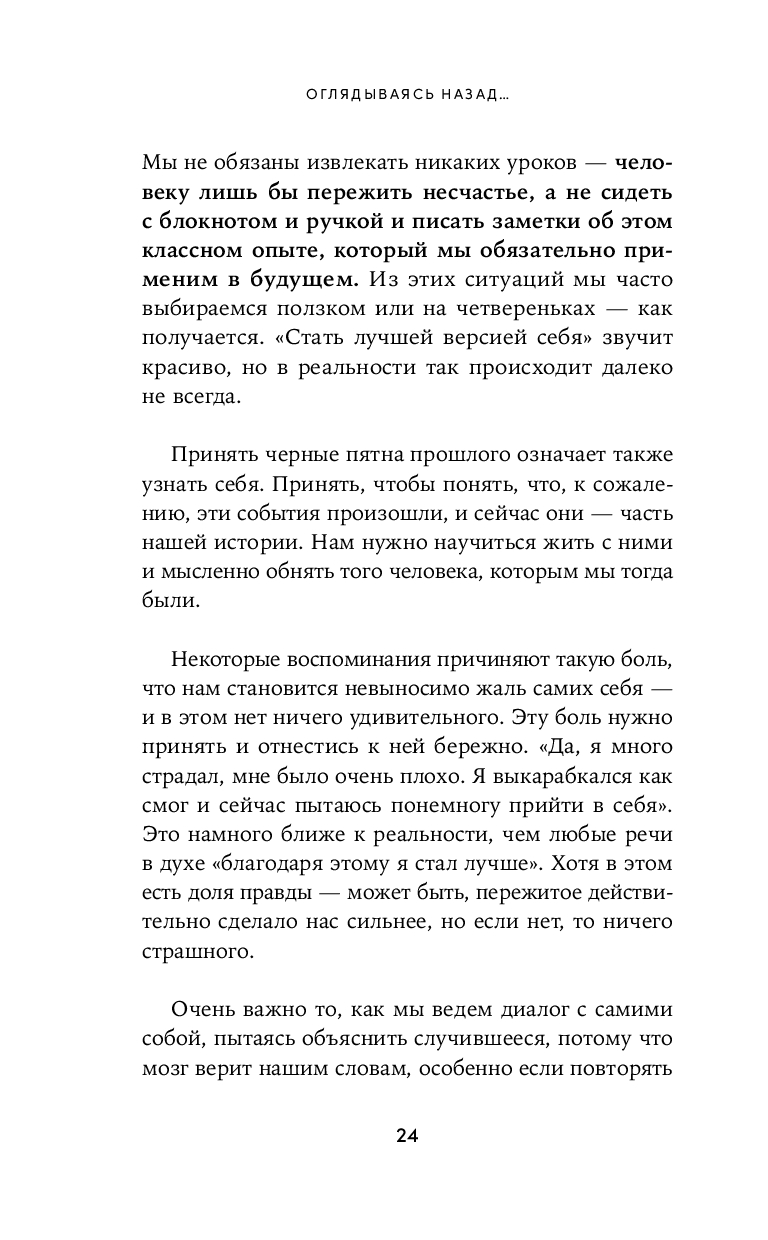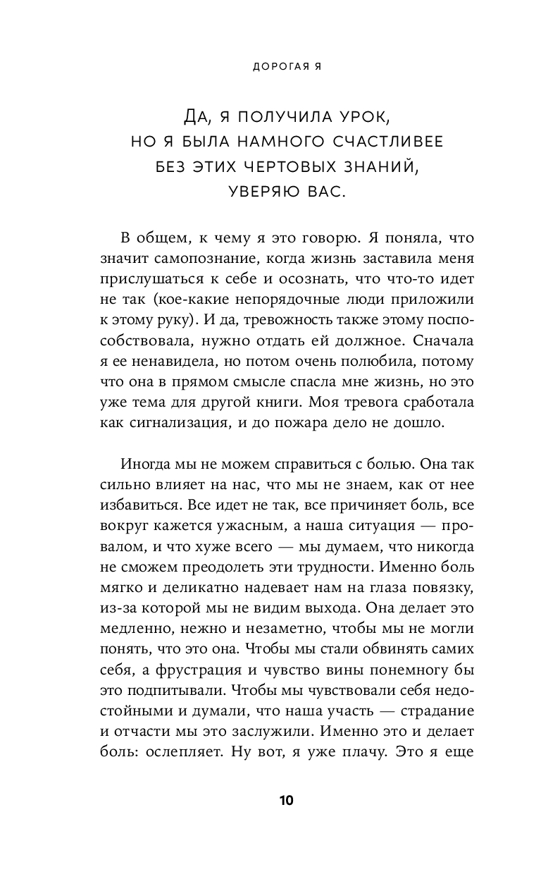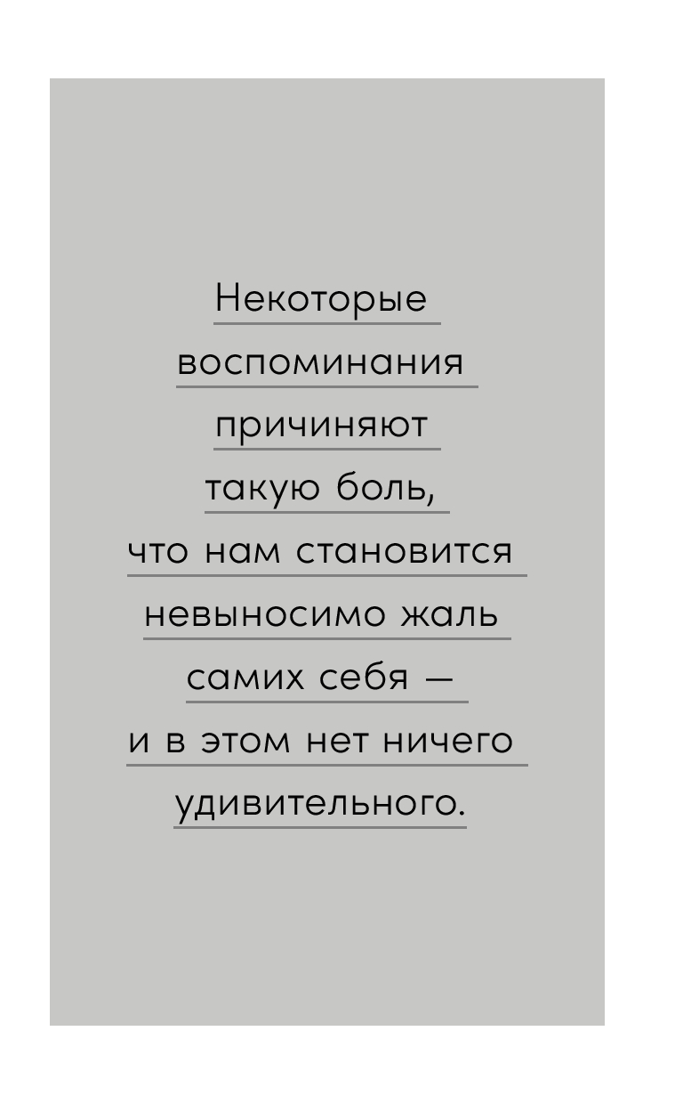 Тебе случалось изводить себя мыслями о прошлых ошибках или травмирующих событиях, которые делили твою жизнь на до и после? А помнишь, как не могла простить человека, который причинил тебе боль, хотя очень старалась, и чувствовала себя от этого еще хуже? Были моменты, когда ты была готова провалиться сквозь землю от стыда после неудачи? Ты киваешь, дорогая я, именно поэтому нам и надо поговорить.