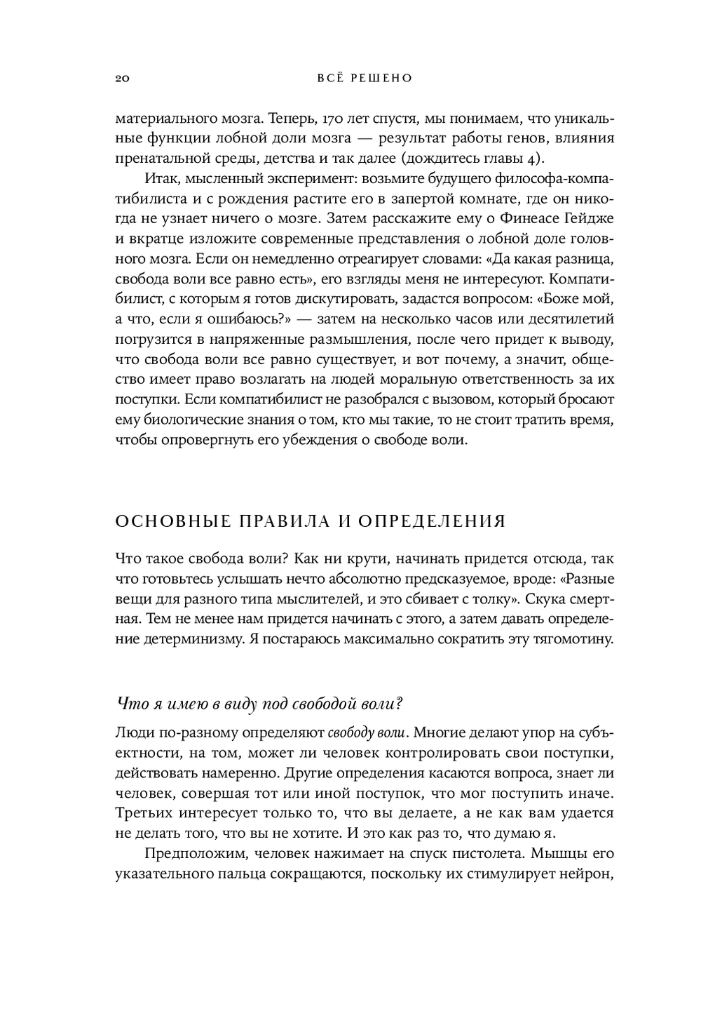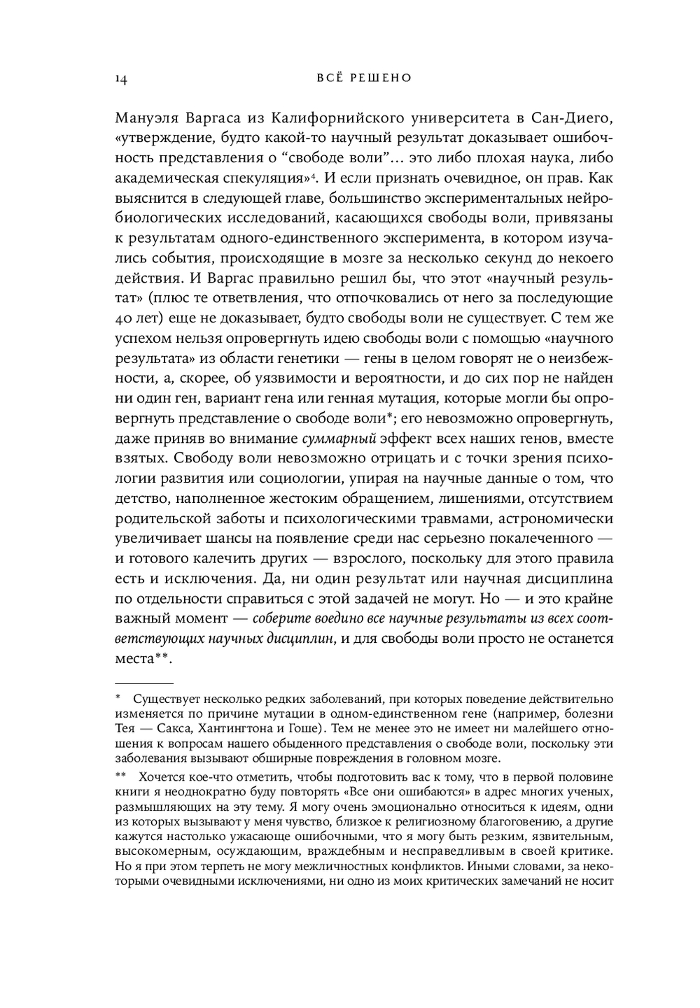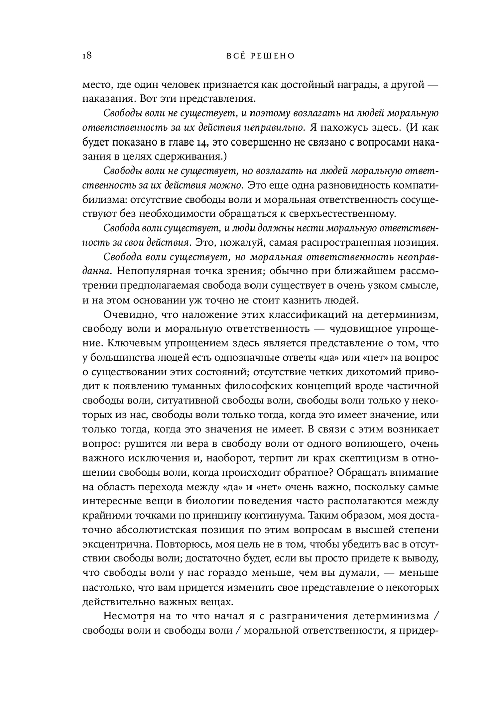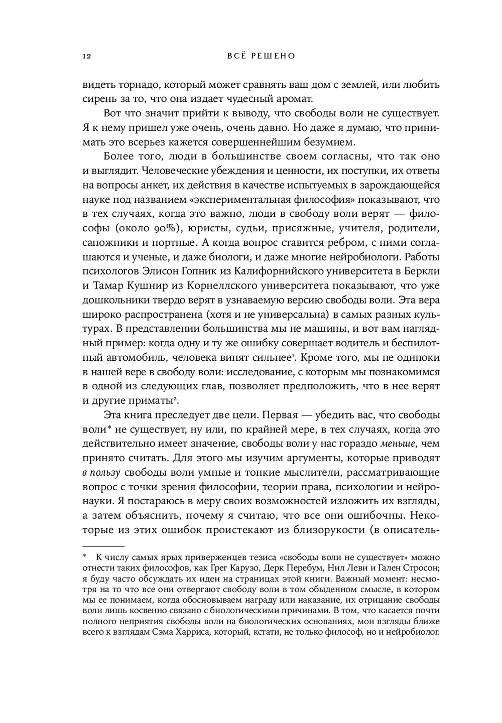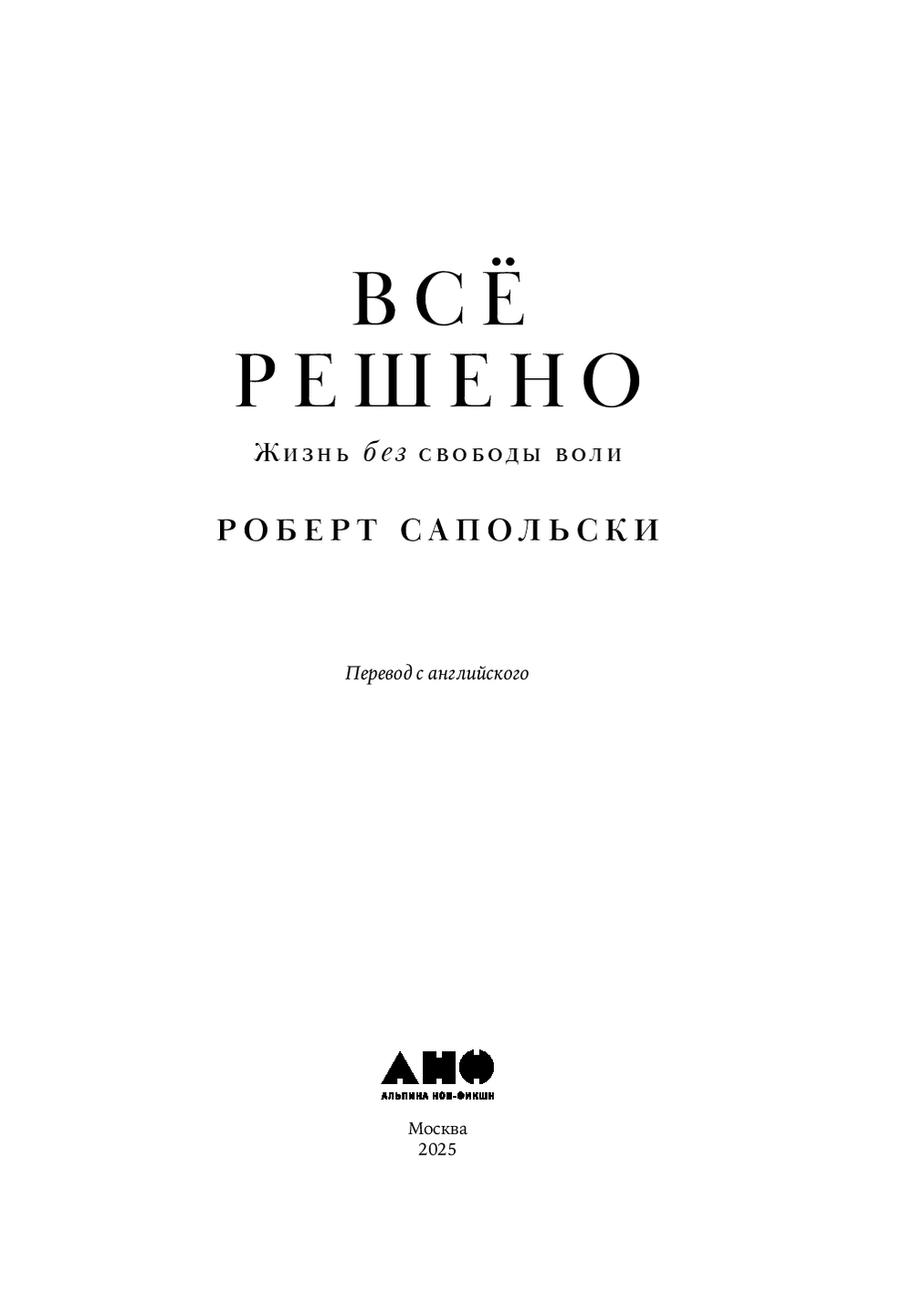 Выдающийся нейробиолог Роберт Сапольски бросает вызов устоявшимся представлениям о свободе воли: он утверждает, что наше поведение предопределено биологическими и социальными факторами. Опираясь на современные научные данные, в том числе нейробиологии, генетики, квантовой механики, автор убедительно доказывает: на наши действия сильнейшим образом влияют и генетическая предрасположенность, и воспитание, и даже случайные события в жизни. В результате мы практически лишены настоящего выбора.
