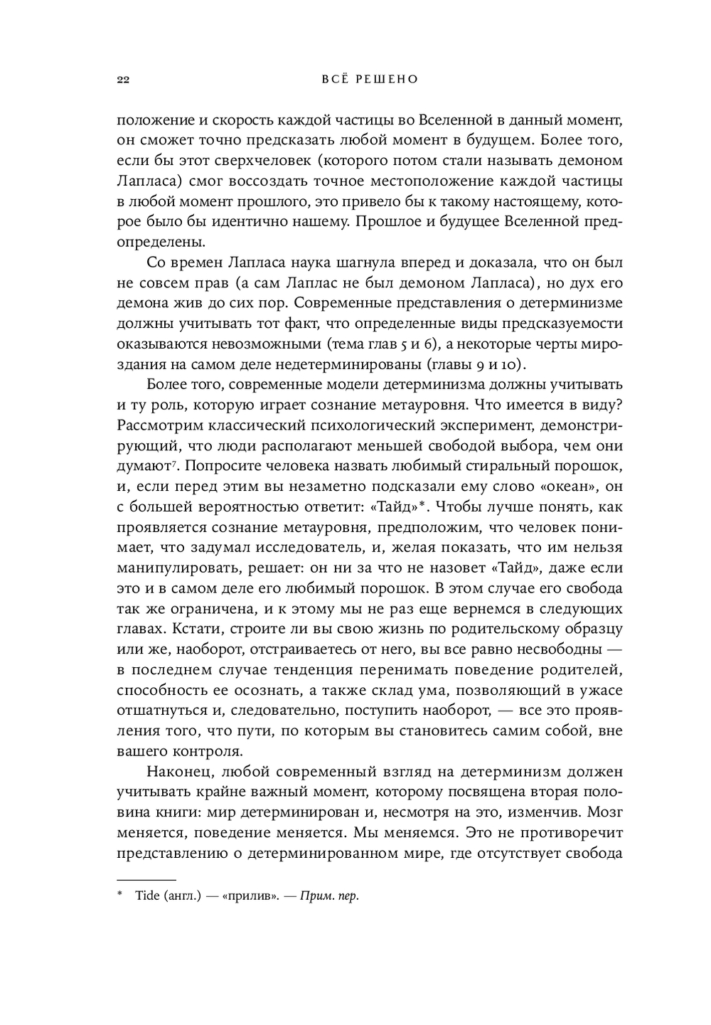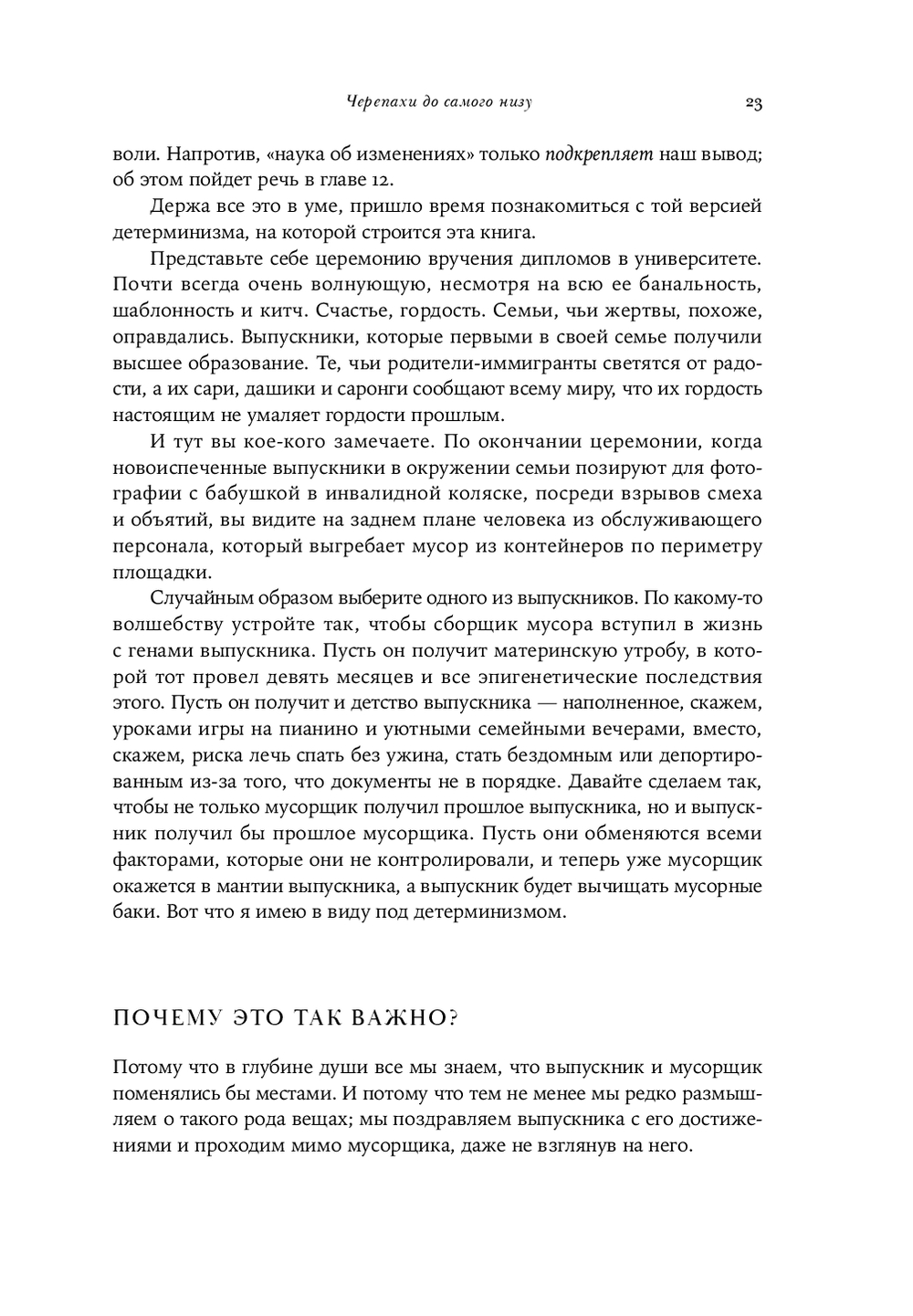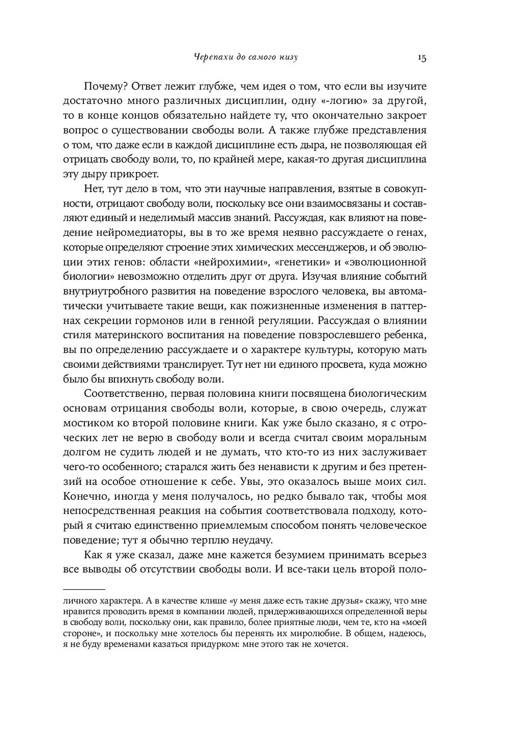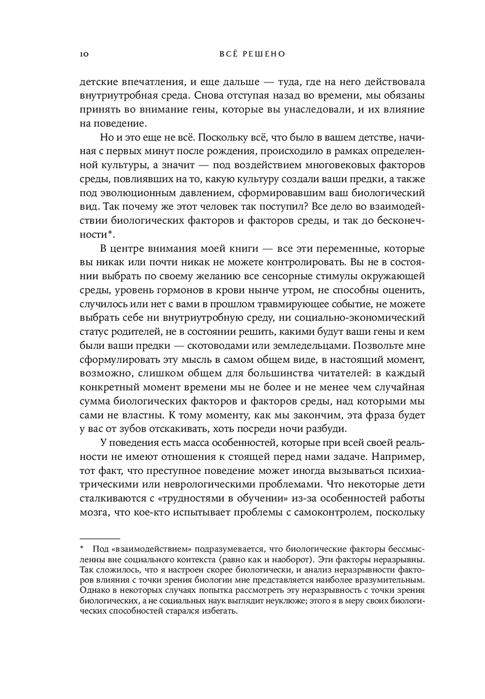 Выдающийся нейробиолог Роберт Сапольски бросает вызов устоявшимся представлениям о свободе воли: он утверждает, что наше поведение предопределено биологическими и социальными факторами. Опираясь на современные научные данные, в том числе нейробиологии, генетики, квантовой механики, автор убедительно доказывает: на наши действия сильнейшим образом влияют и генетическая предрасположенность, и воспитание, и даже случайные события в жизни. В результате мы практически лишены настоящего выбора.