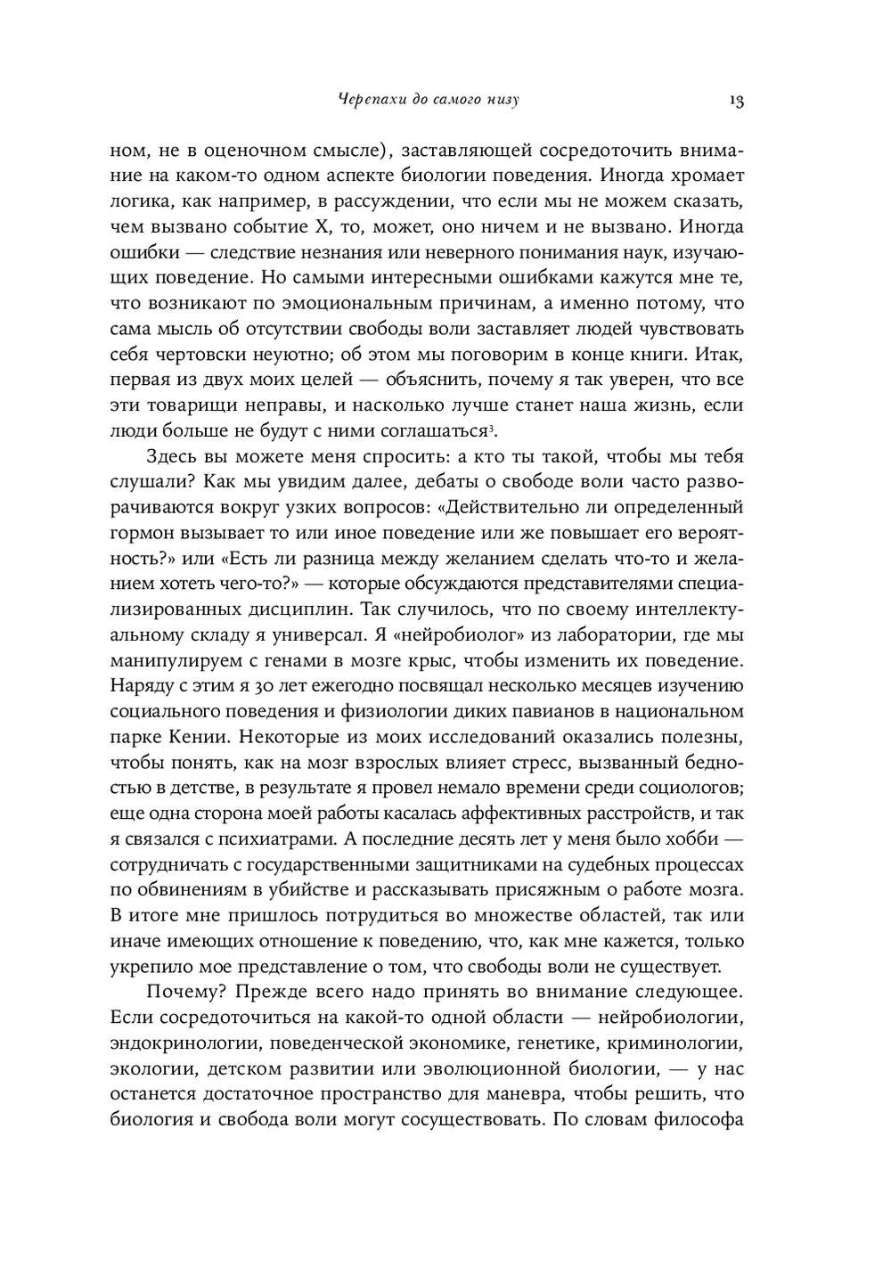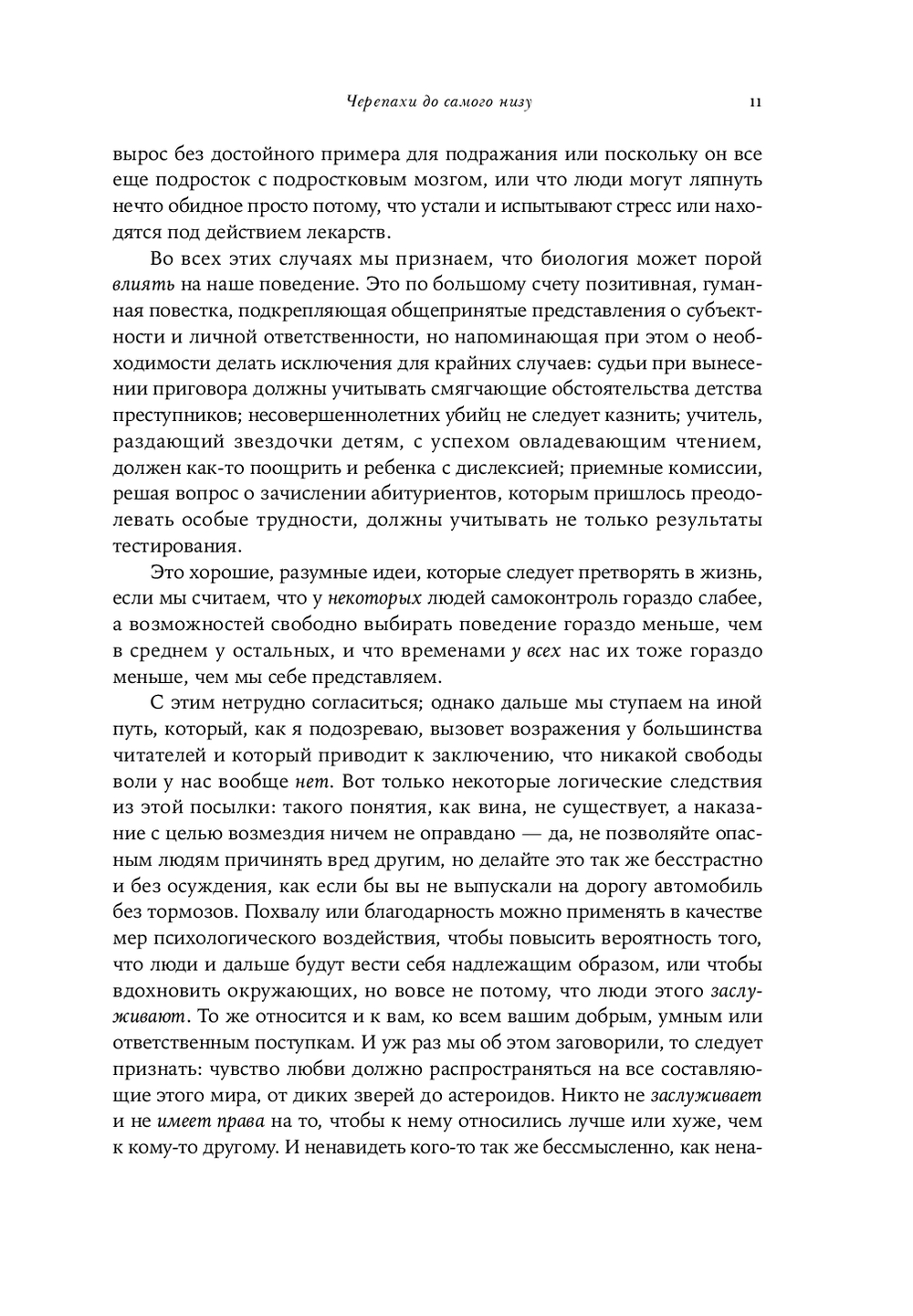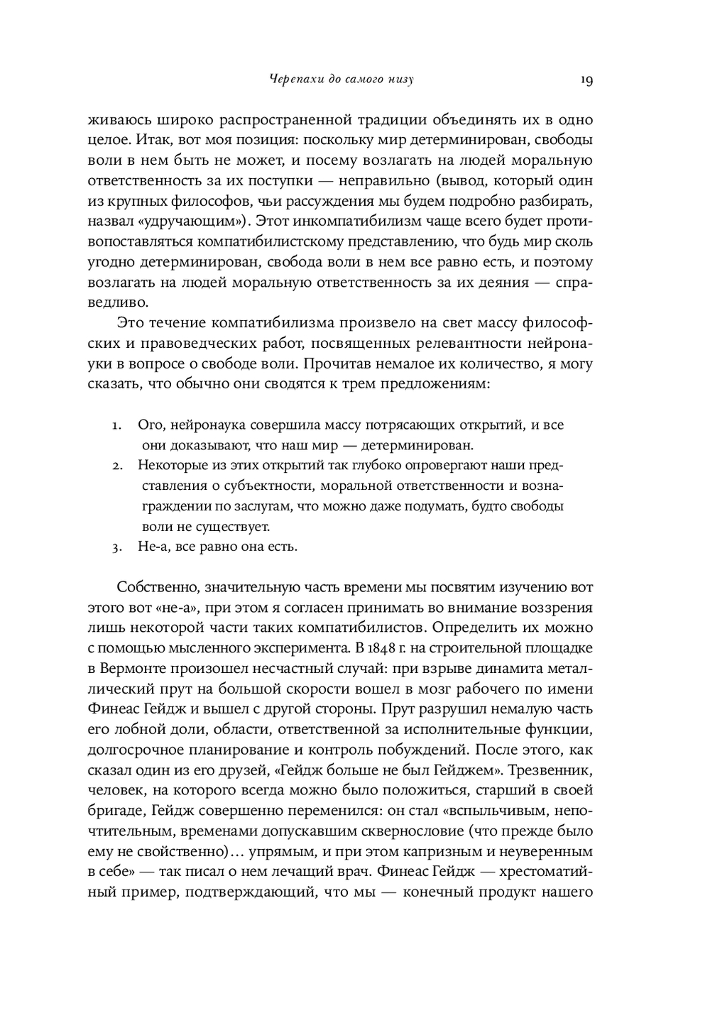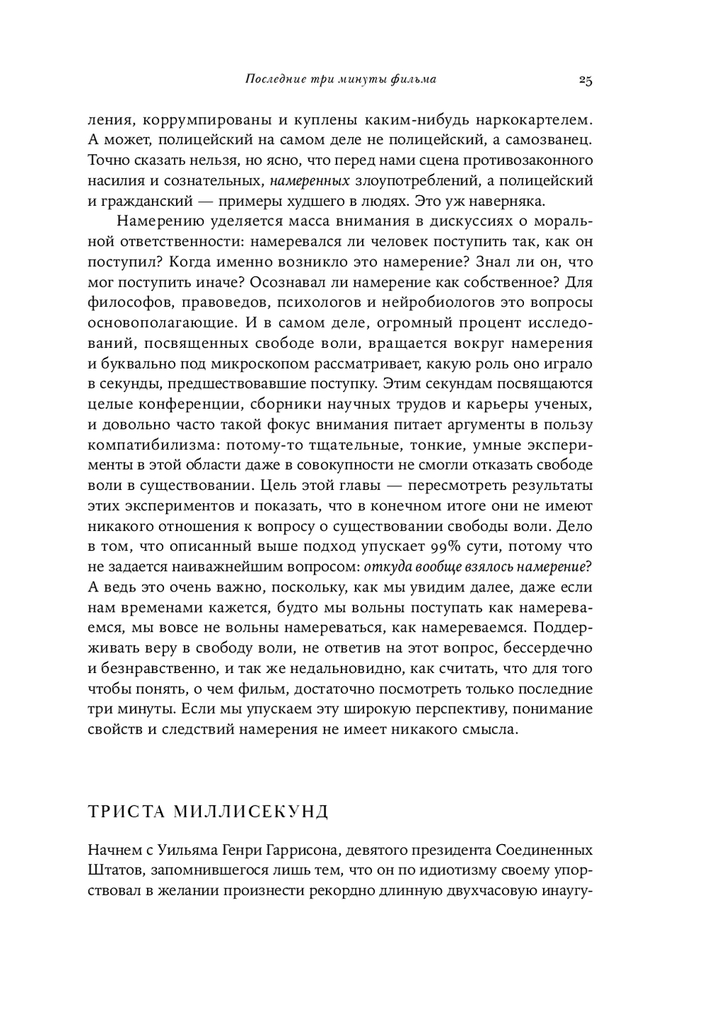 Сапольски подробно описывает эксперименты, доказывающие, что человеческий мозг принимает решения раньше, чем мы их осознаем, и таким образом ставит под сомнение нравственные и юридические основы идеи свободной воли. Значит ли это, что необходимо отказаться от осуждения и наказания преступника, который на самом деле якобы ни в чем не виноват?