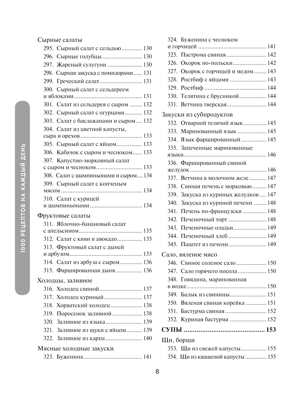 Эта книга, в которой нуждается почти каждая хозяйка. Весьма затруднительно каждый день думать, что бы приготовить на следующий день. Здесь вы найдет 90 завтраков, 120 первых блюд, 340 вторых, 80 десертов и выпечки, и помимо этого – рецепты напитков и домашних заготовок. Для удобства все рецепты пронумерованы. Они тщательно отбирались, были использованы различные источники, в том числе домашние записи разных людей. Все это обрабатывалось и несколько раз перечитывалось. Книга снабжена полезными советами и комментариями, местами, где можно записать собственные наблюдения, и алфавитным указателем рецептов для лучшего поиска по блюдам. Также в ней присутствуют цветные вкладки, на которых проиллюстрированы некоторые блюда из книги. Пусть она облегчит поиск "чего бы приготовить на завтра"!