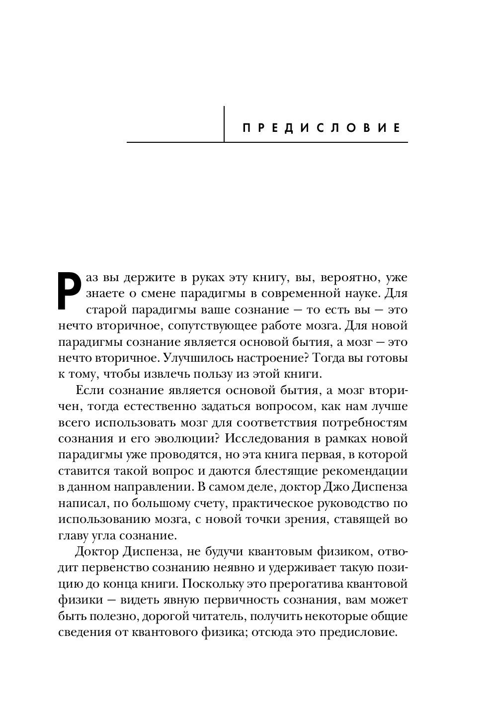 Почему вы прокручиваете одни и те же негативные мысли в голове? Почему становитесь заложником вредных привычек или не можете выйти из разрушительных отношений? Доктор Диспенза объясняет, как работает человеческий мозг. И выявляет закономерность – почему наш разум снова и снова проигрывает одни и те же поведенческие модели. С помощью этой книги вы сможете не только сломать отрицательные сценарии, но и перепрограммировать подсознательные программы, исцелить свое тело и психику.