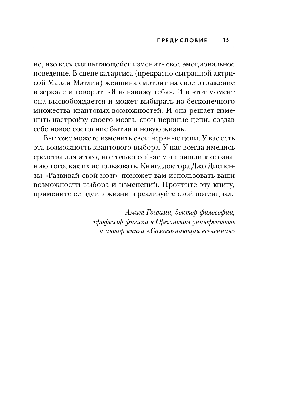 Доктор Джо Диспенза – профессор нейрохимии и нейробиологии, автор мировых бестселлеров по развитию мозга, выступает с мастер-классами в 26 странах на 5 континентах.