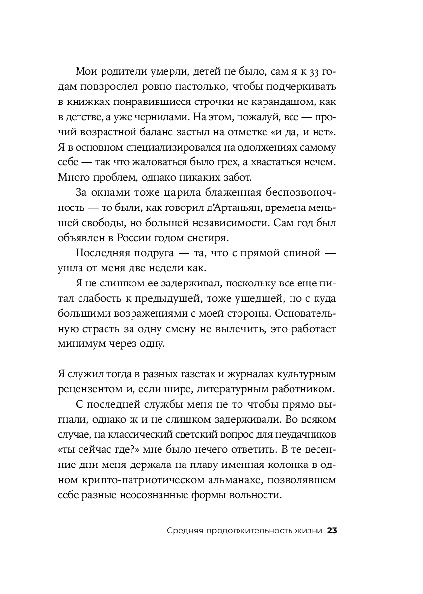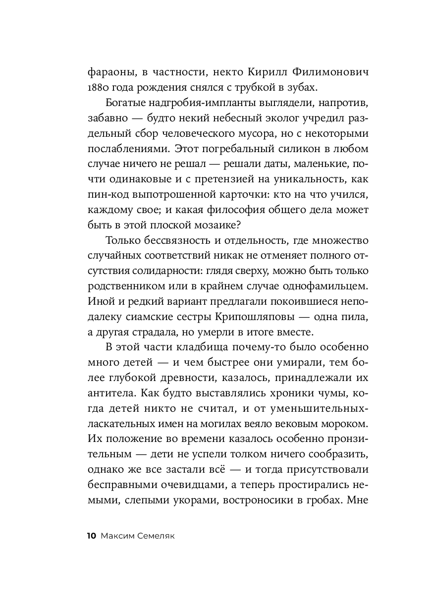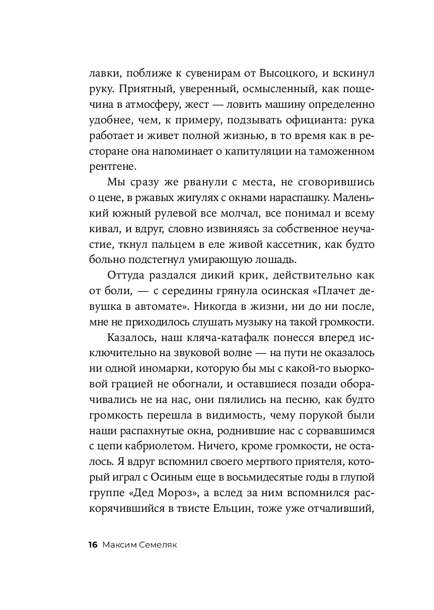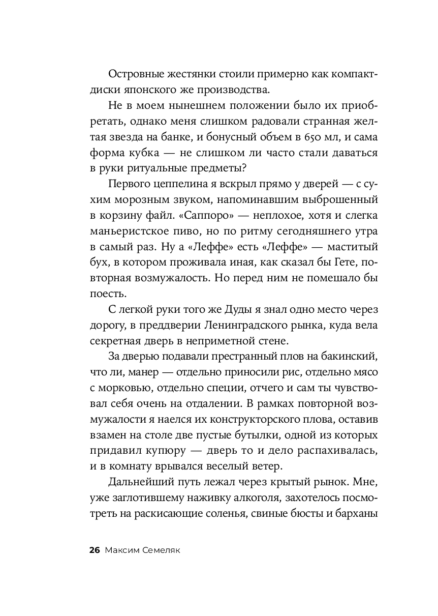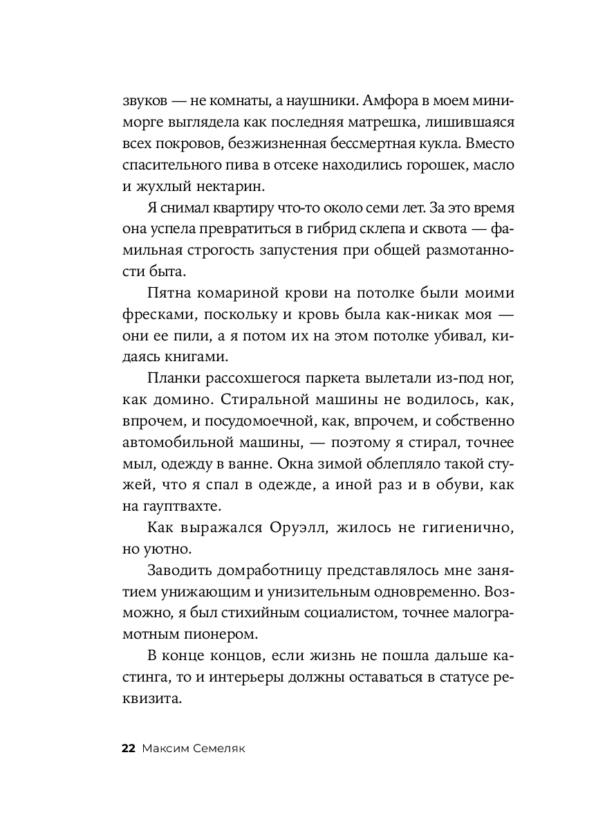 Максим Семеляк казался музыкальным критиком "Афиши", отцом-основателем "Prime Russian Magazine", главным редактором "Men's Health" – и отродясь не был евангелистом "автофикшна". Тем не менее, герой его первого романа – надежный, как весь гражданский флот рассказчик: один в один автор образца 2008 года. Нарцисс-мизантроп, он раскапывает могилу на Ваганьковском и, окружив себя свитой из эксцентричных существ, притворяется внуком Зощенко, изучает боевое искусство, практикует мирное варварство, торгует прошлогодним снегом, погружается в бытовую феноменологию, барахтается между юмореской и элегией и плавает в философии.