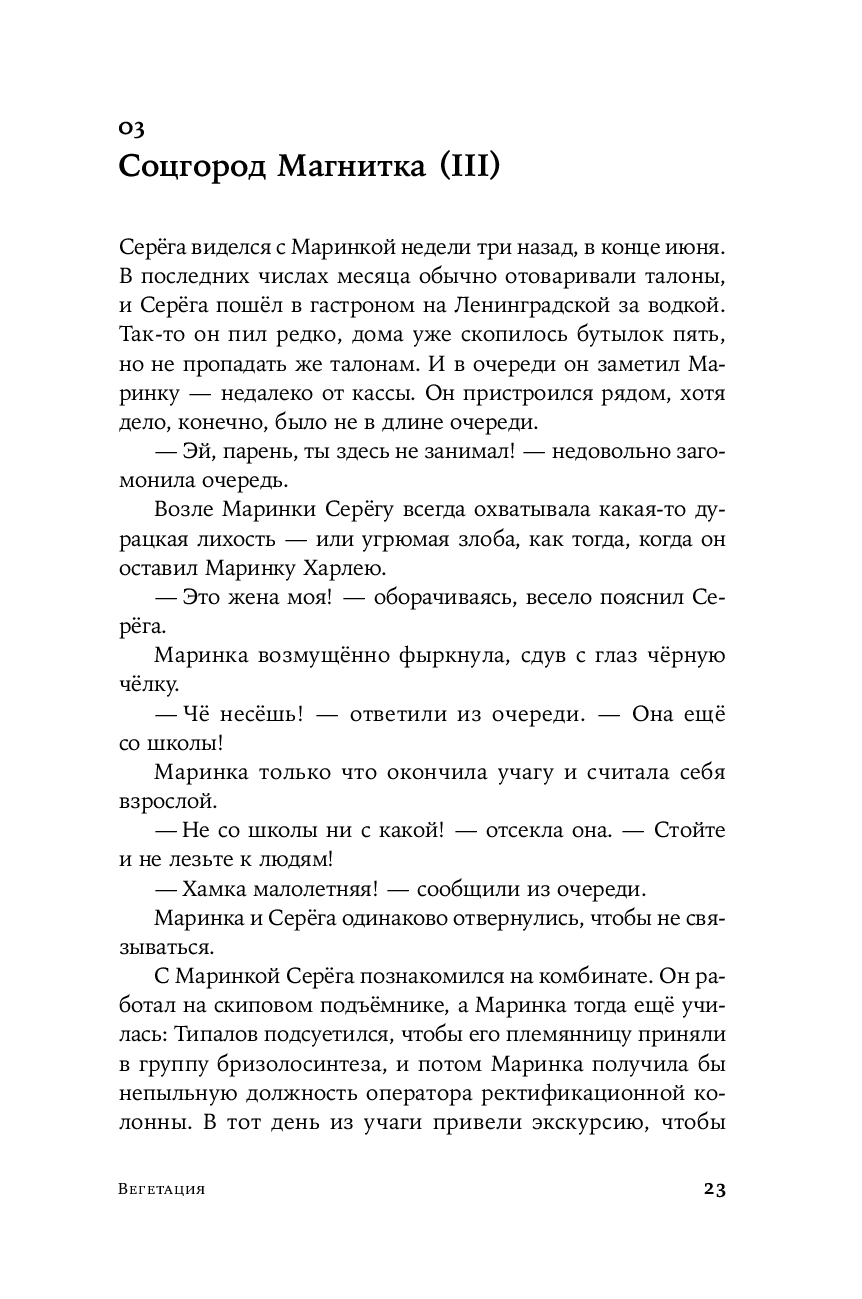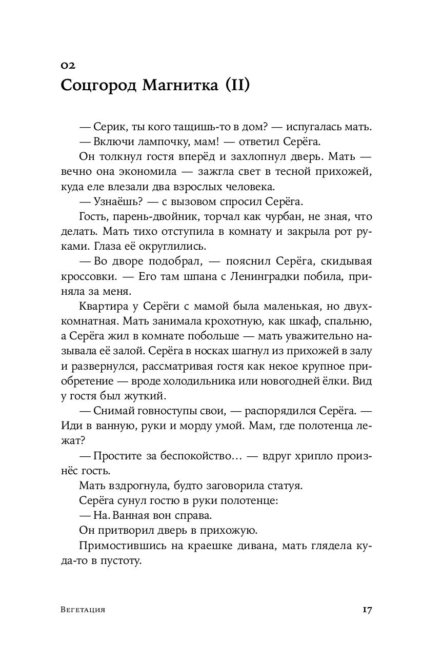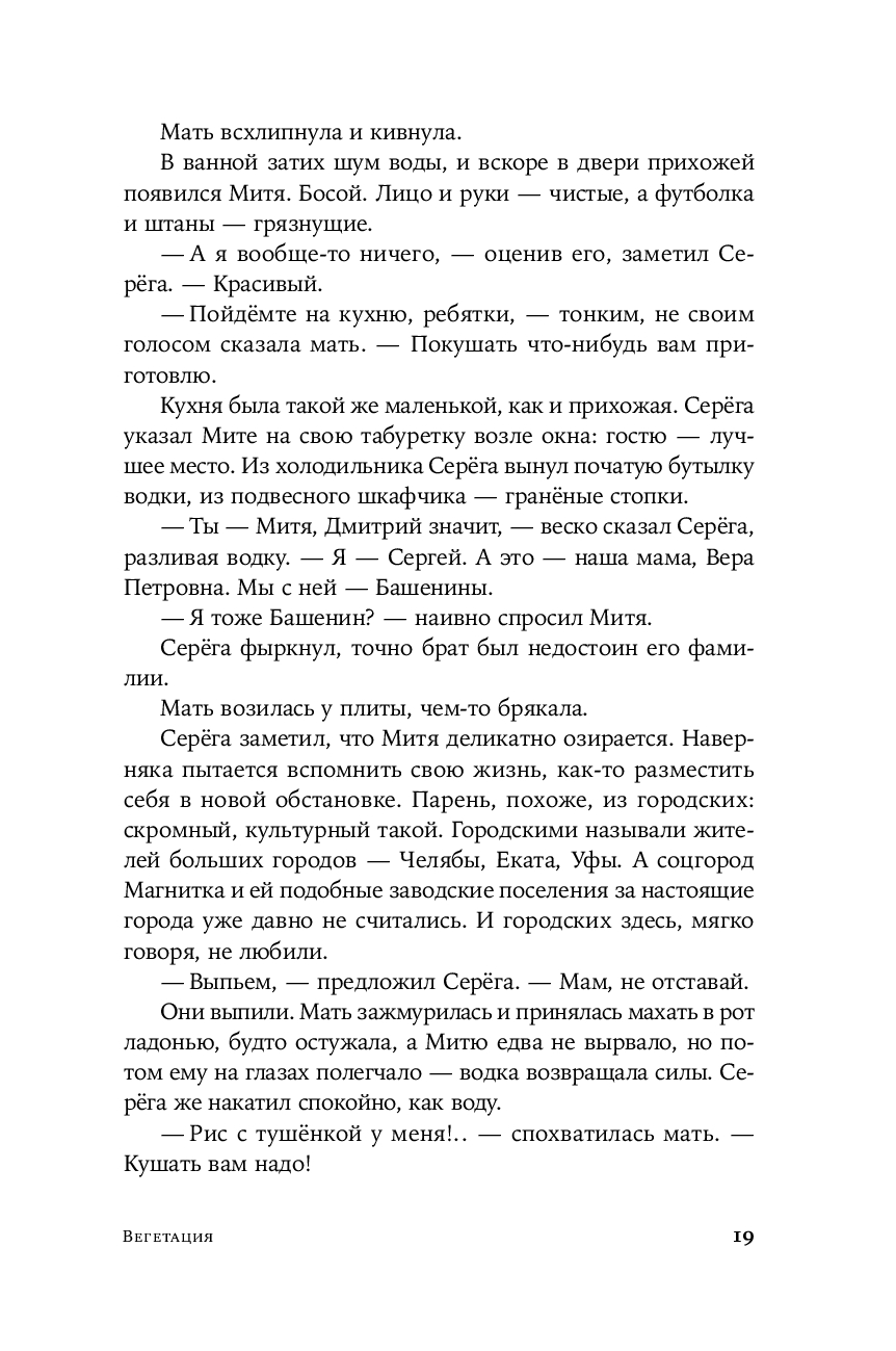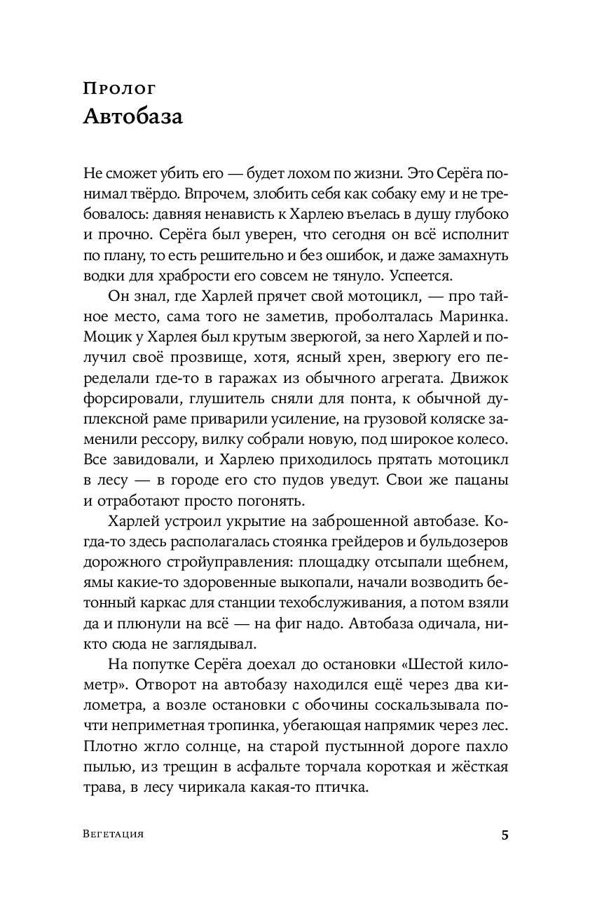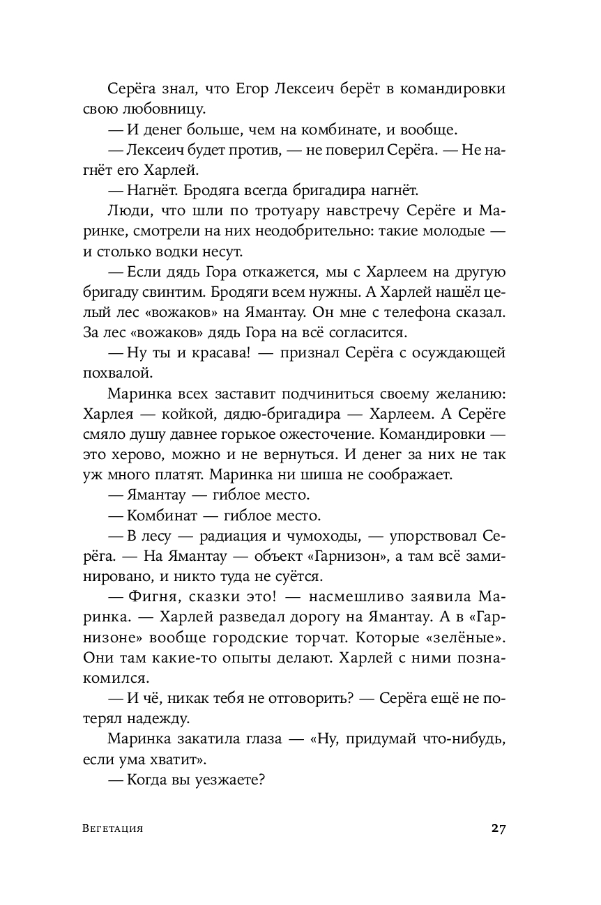 Роман "Вегетация" построен по канонам многих жанров. Это роуд-муви – история путешествия, одиссея. Это постап – постапокалипсис. Это дизель-панк в российской глухомани. Это крепкий сай-фай – научная фантастика. Видовое разнообразие антиутопий подобно мутагенному лесу, однако "Вегетация" рассказывает не о том, куда едут герои, а о том, куда идём мы сами.