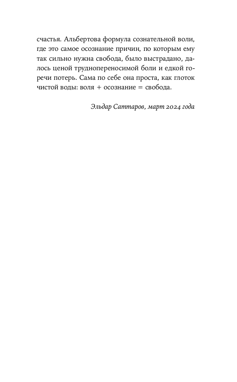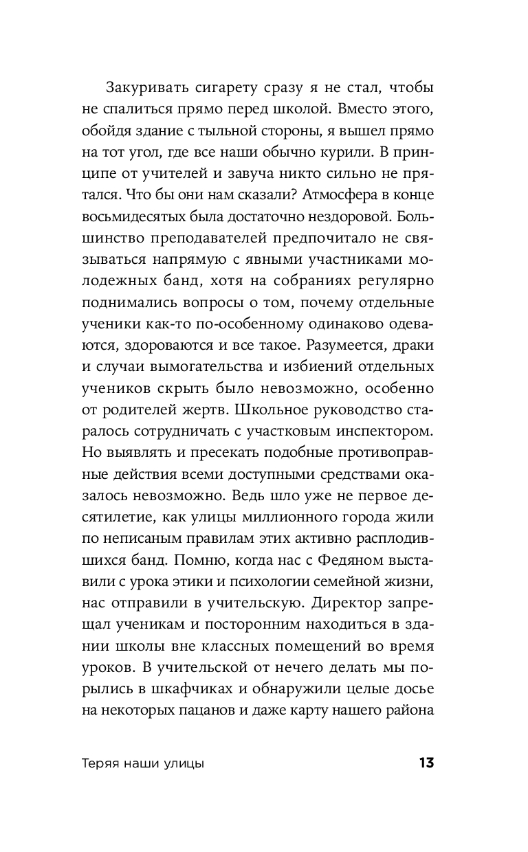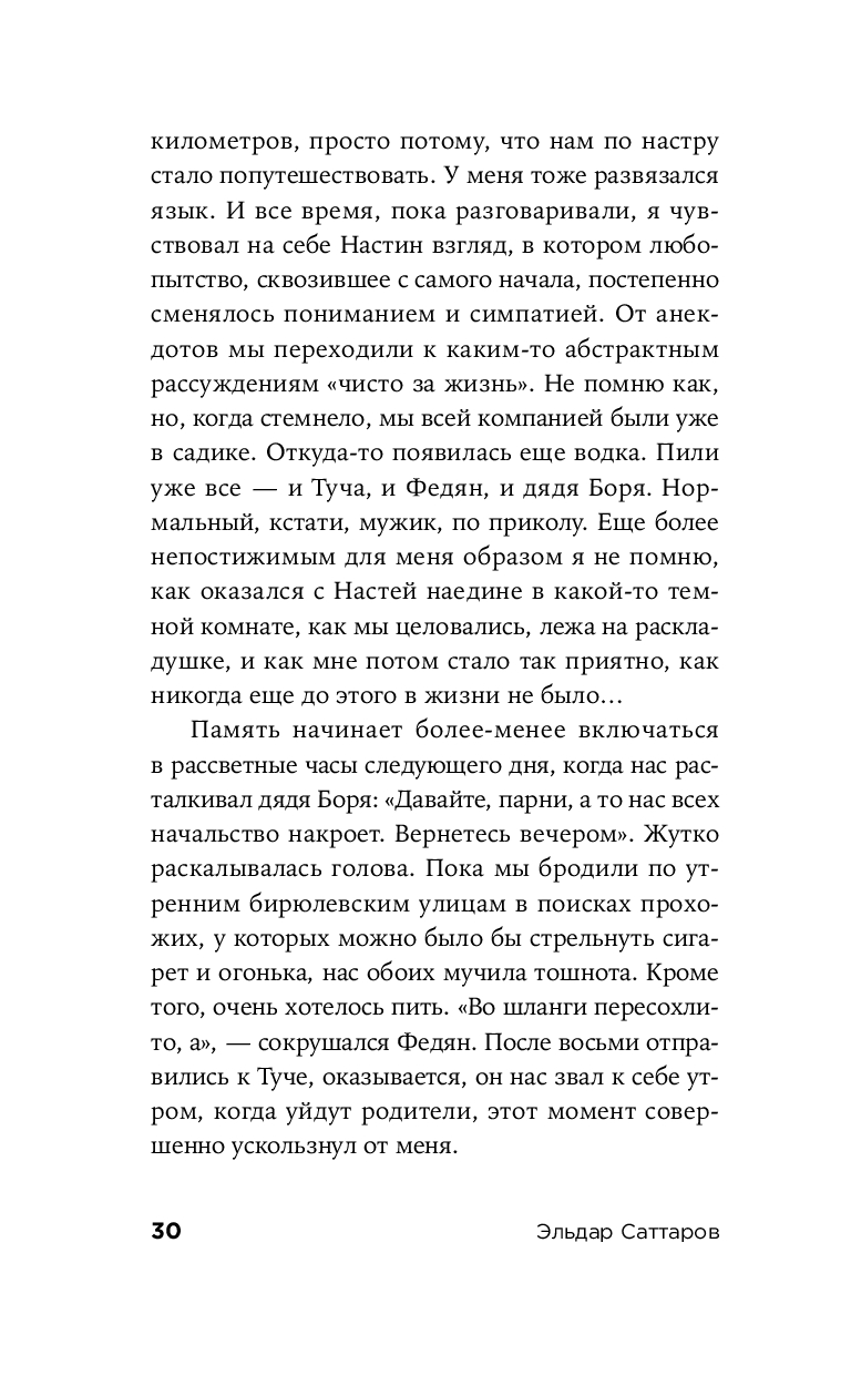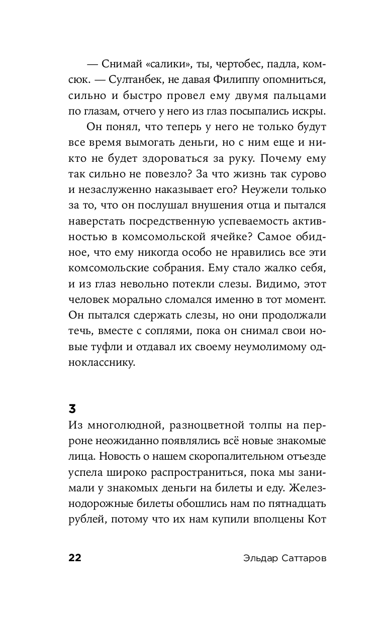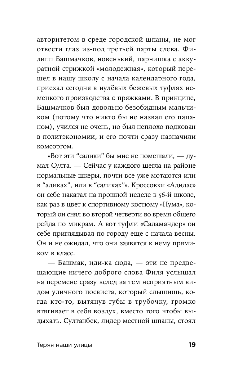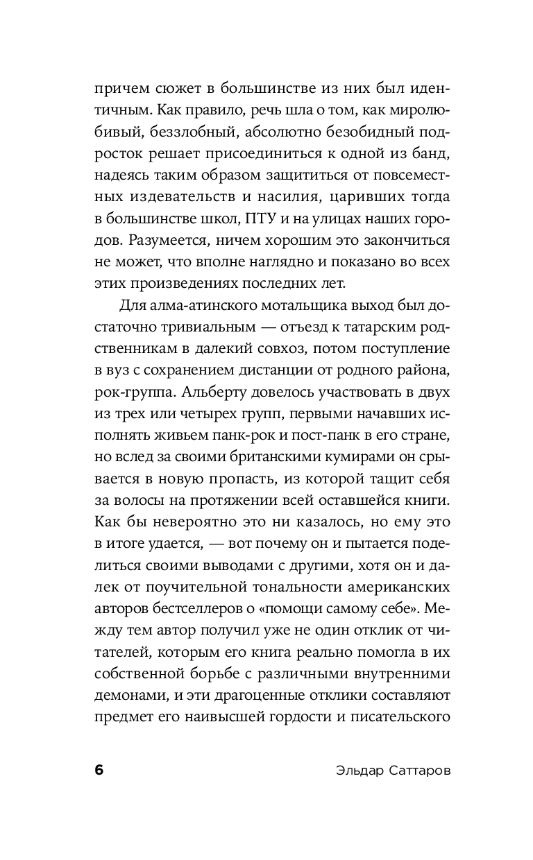 Многослойная, стремительная история, в которой герой проходит небезопасный квест в атмосферных локациях. Ее лирический герой – панк и анархист – взрослеет в лучших традициях своих ультралевых кумиров: пацанские разборки в Алма-Ате 1980-х; рок-н-ролл и тяжелые зависимости в Москве 1990-х, Европе 2000-х и далее везде; метания физические, душевные и географические. Все это для того, чтобы прийти к себе настоящему и увидеть свет в тот момент, когда в ретроспективе твоей жизни вот-вот запустят финальные титры.