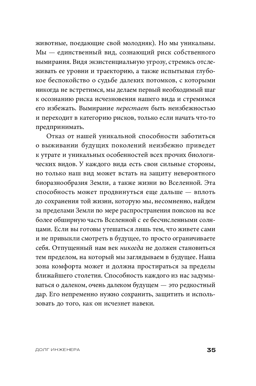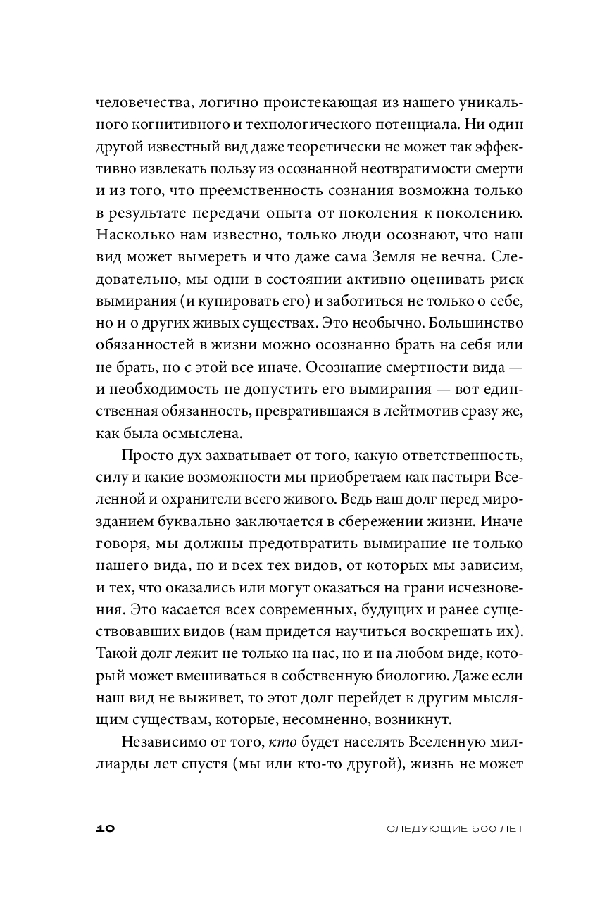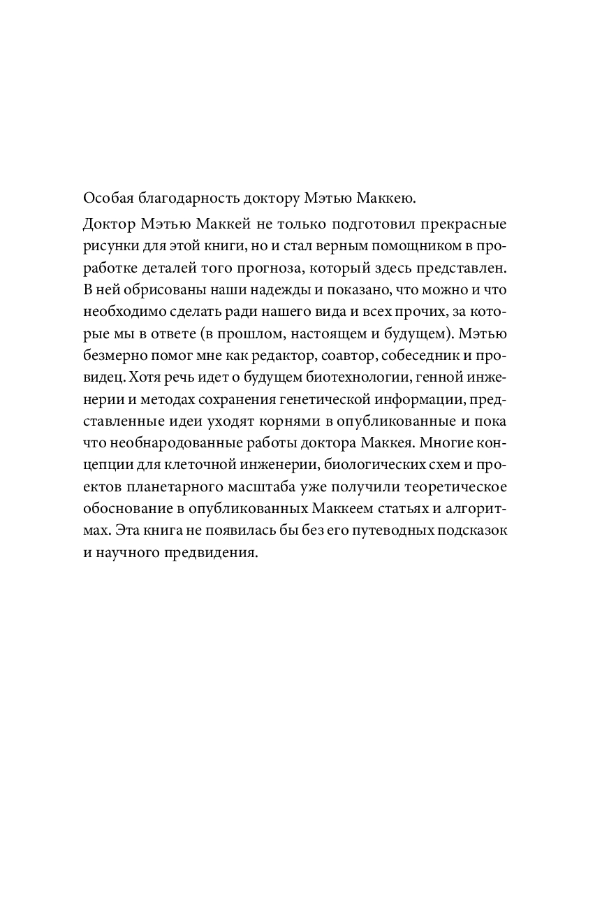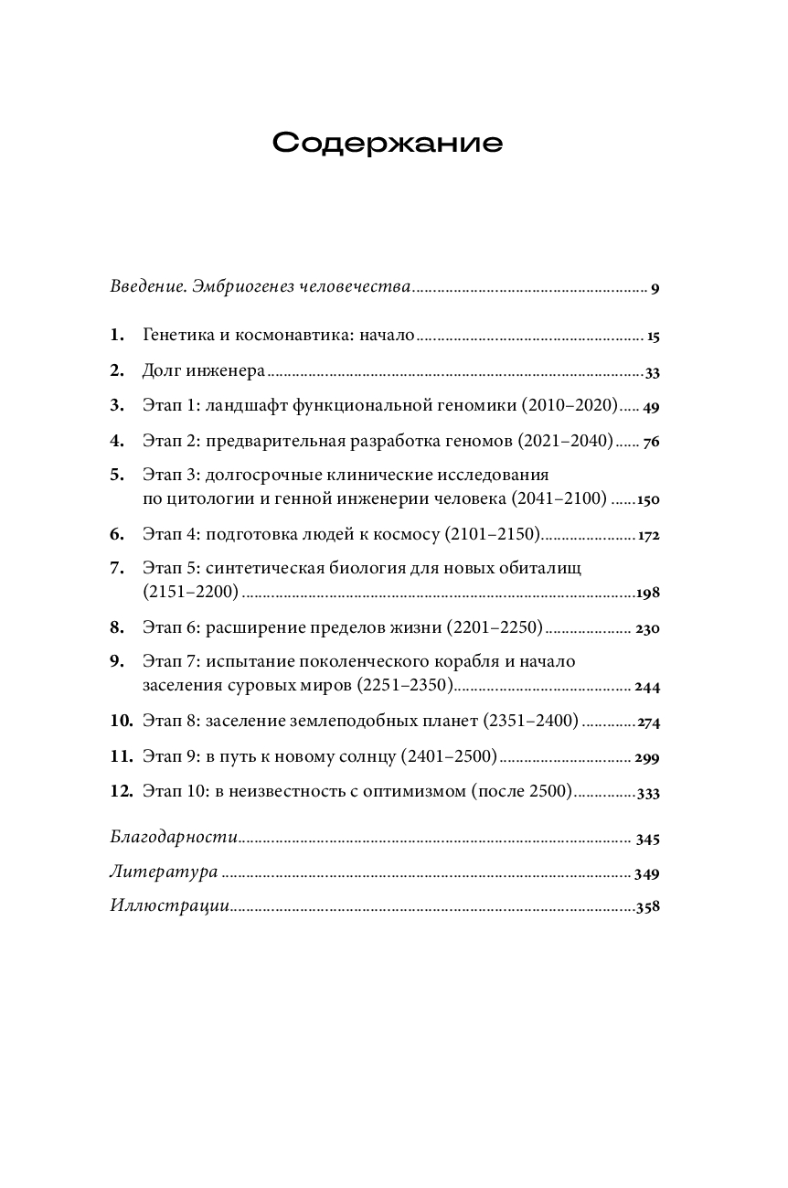 Жизнь на Земле неизбежно придет к концу – в результате климатической катастрофы, войны или гибели Солнца через несколько миллиардов лет. Чтобы избежать вымирания, нам придется найти новую планету, возможно, даже новую солнечную систему. Автор предлагает десятиэтапный план, который рассчитан на 500 лет. В нем он описывает, как длительные космические путешествия влияют на космонавтов и как изменить геном человека, чтобы тот мог переносить экстремальные условия космического пространства – с конечной целью заселения людьми новых солнечных систем. Он предлагает дорожную карту, по которой можно определить, какие солнечные системы следует посетить в первую очередь, и объединяет биотехнологии, философию и генетику, чтобы предложить беспрецедентное видение грядущей Вселенной.