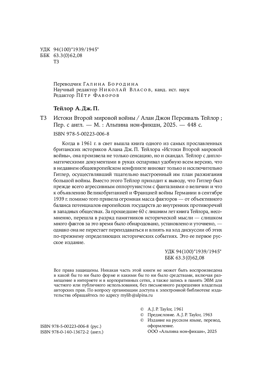 Первое издание на русском языке классического труда известного британского историка А. Дж. П. Тейлора, которое представляет собой обширное исследование международной политики, приведшей к самому кровопролитному конфликту XX века.