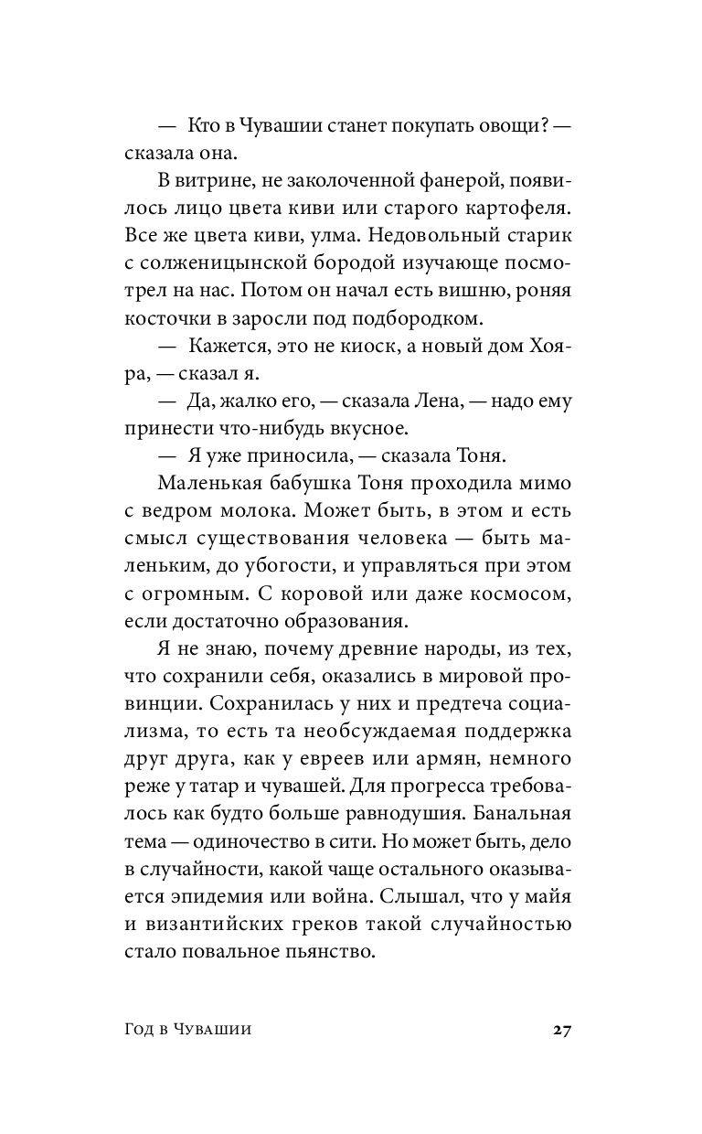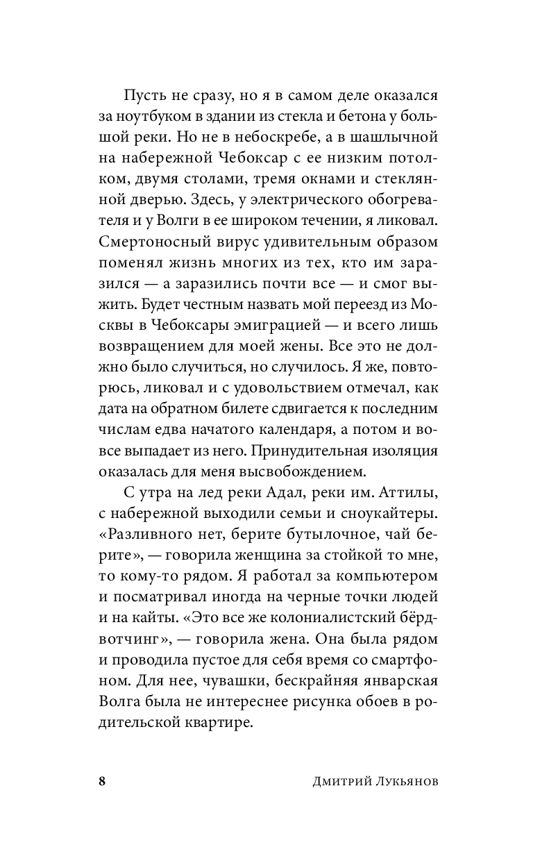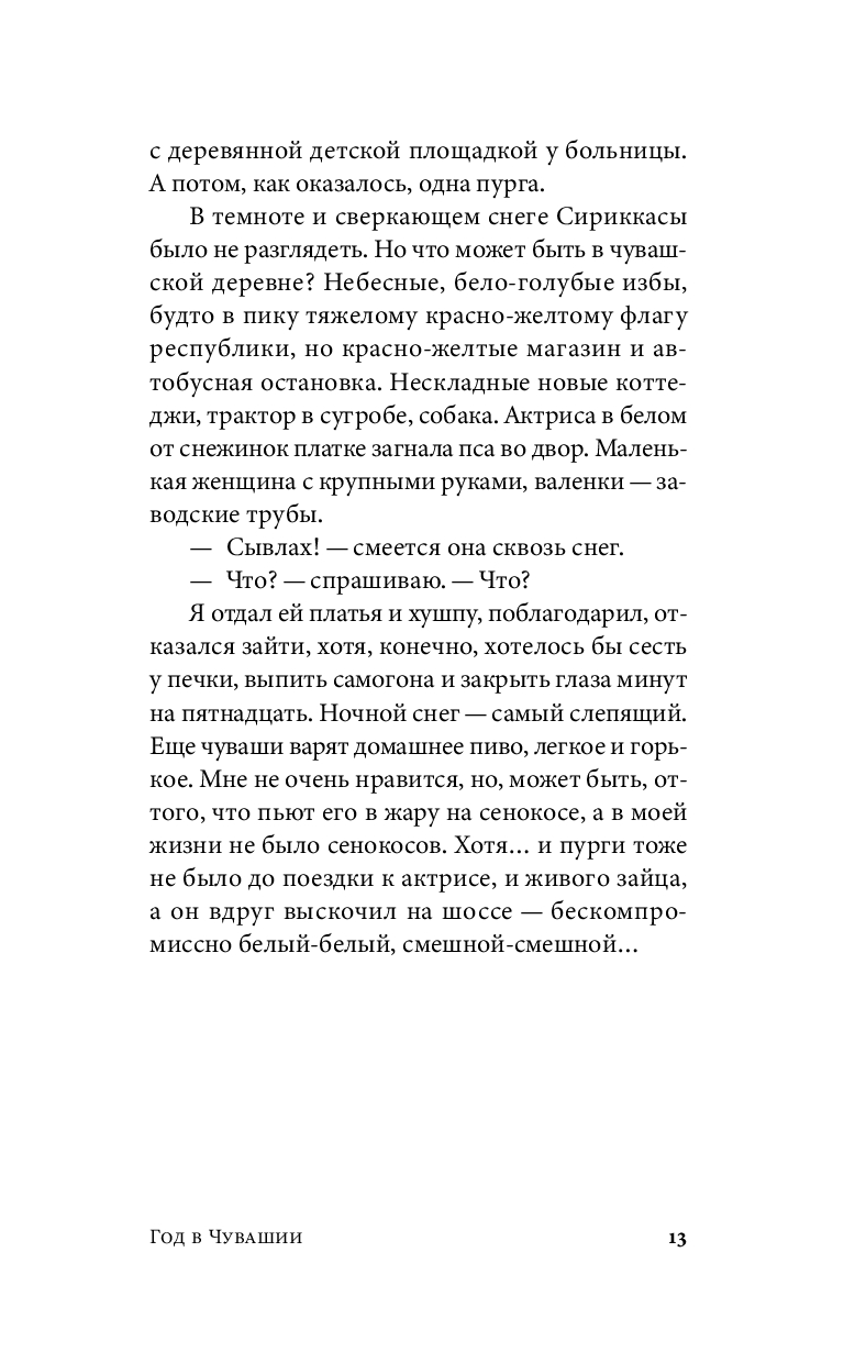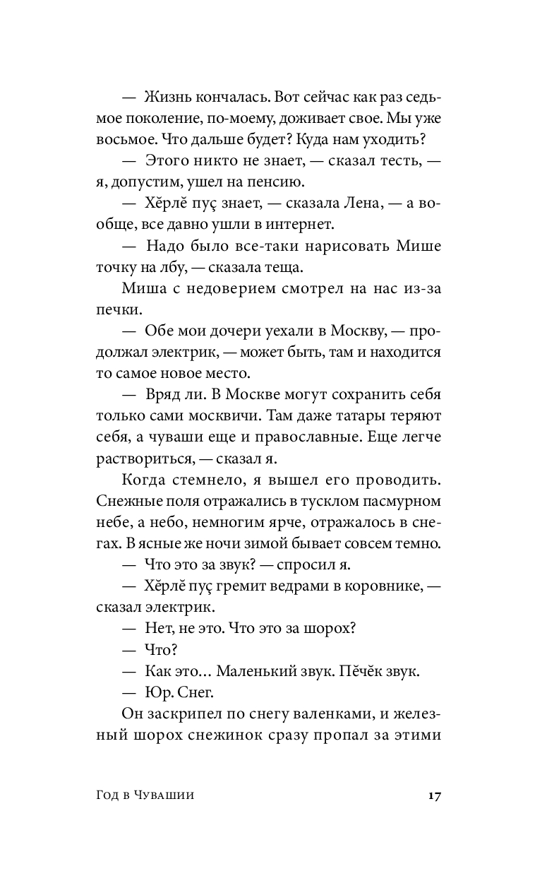 С наступлением пандемии главный герой на год переезжает из столицы в Чувашию, к родственникам жены, и оказывается в незнакомом мире, подчиняющемся своим внутренним законам. Наблюдая за маленьким сыном, понимающим и одновременно не понимающим родные языки родителей – русский и чувашский, герой невольно сравнивает себя с малышом, изучая местный уклад и пытаясь приноровиться к непривычной ментальности и новому темпу жизни. Эта история, написанная в неспешной шукшинской манере, полна забавных диалогов и парадоксальных встреч. Здесь серьезное соседствует с абсурдным, а границы разумного кажутся зыбкими, резонируя со скоротечной ковидной реальностью.