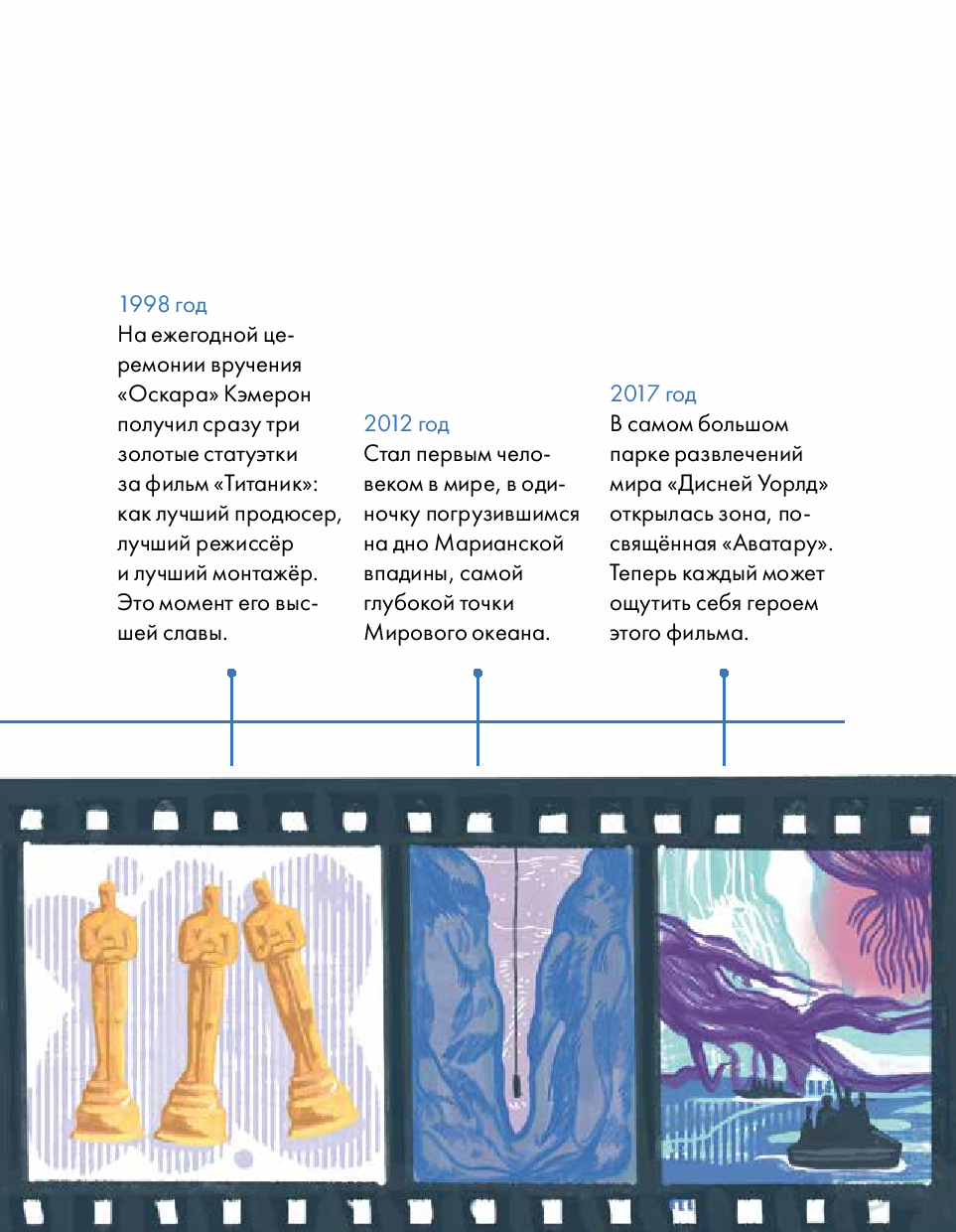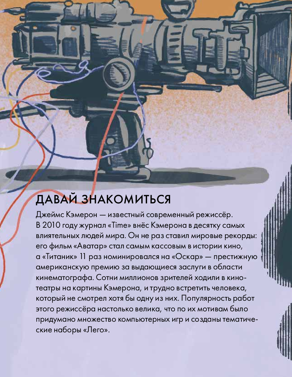 Джеймс Кэмерон – известный режиссёр, автор таких блокбастеров, как "Аватар", "Терминатор", "Титаник" и многих других. Трудно встретить человека, который не видел ни одного его фильма! И мало кого они оставляют равнодушным: работы Кэмерона всегда поражают захватывающим сюжетом и яркими сценами. Кроме того, он настоящий новатор, разработавший новые техники съемки, неутомимый исследователь морских глубин и активный борец за экологию.
