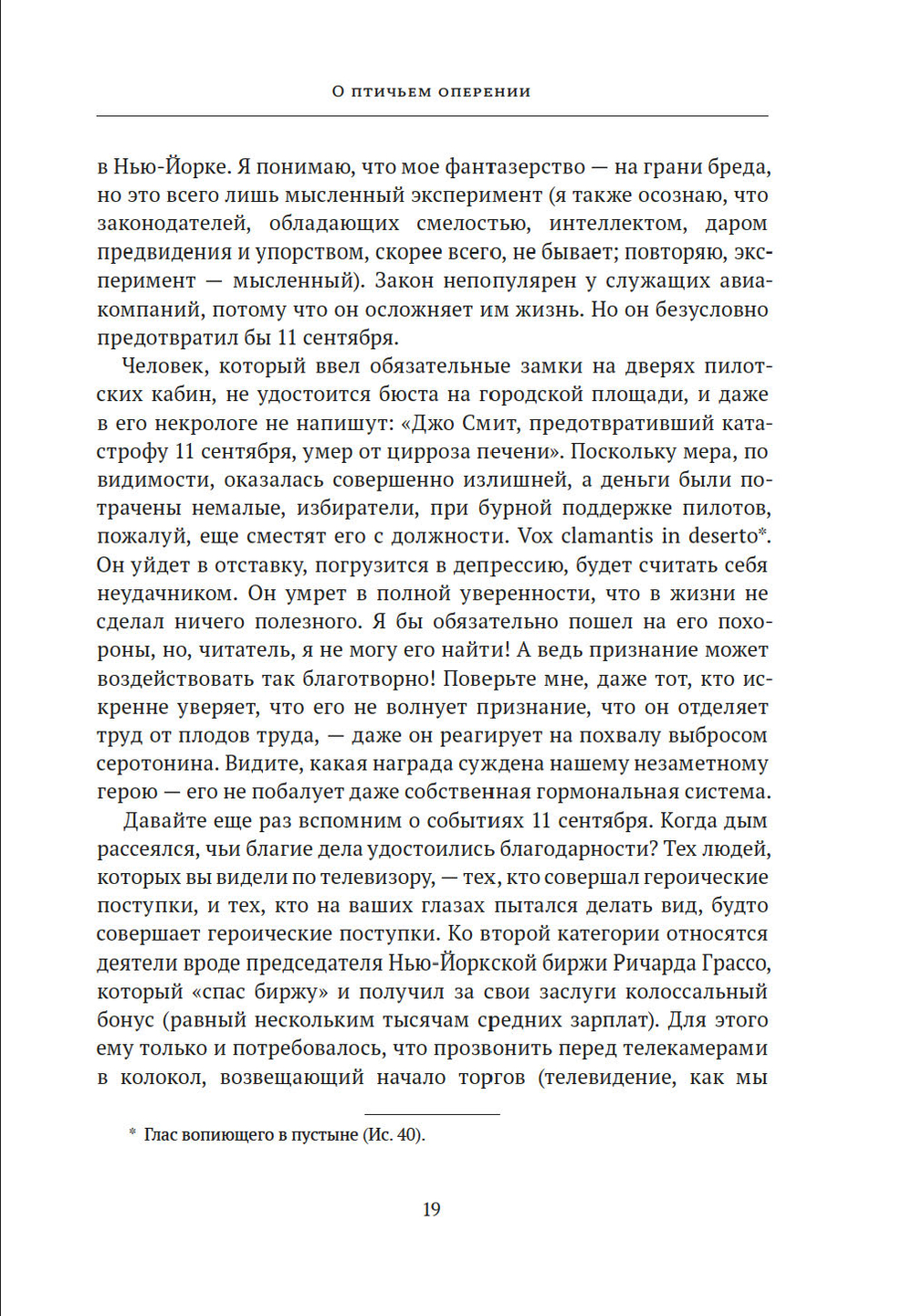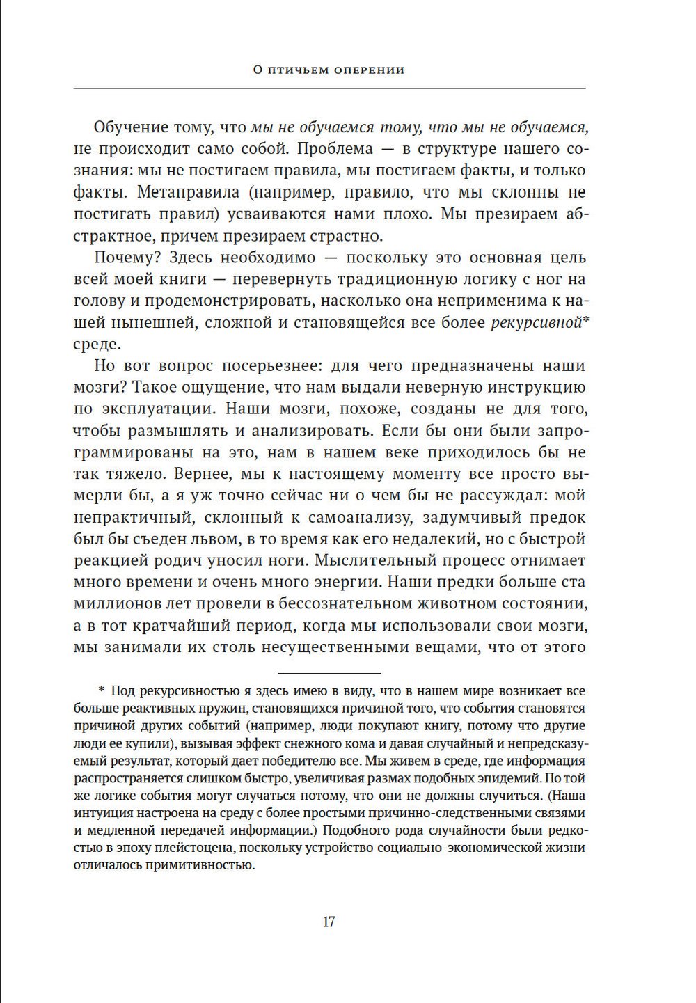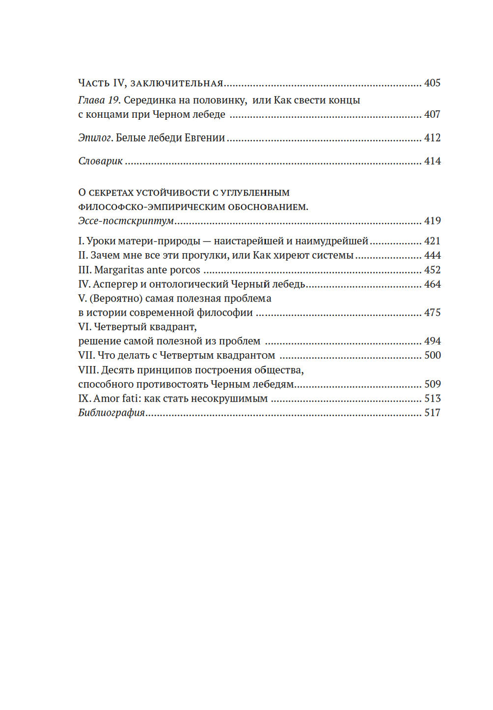 В написанном позже эссе-постскриптуме "О секретах устойчивости" Талеб дает остроумный отпор тем экономистам-ортодоксам, которые приняли созданное им антиучение в штыки.