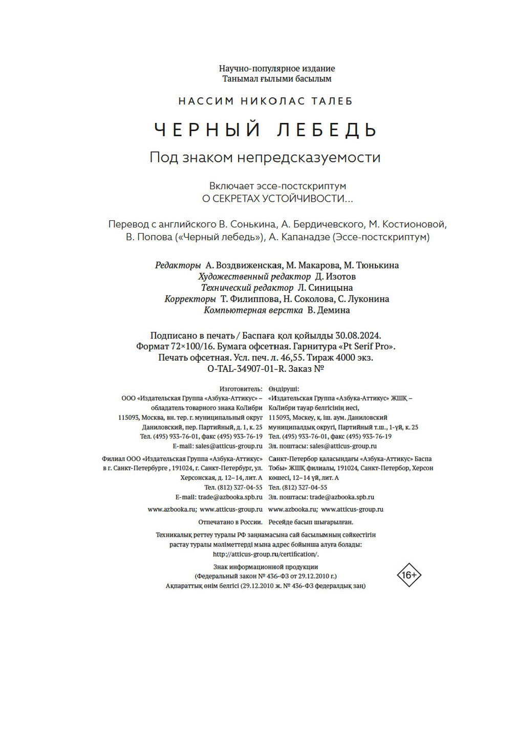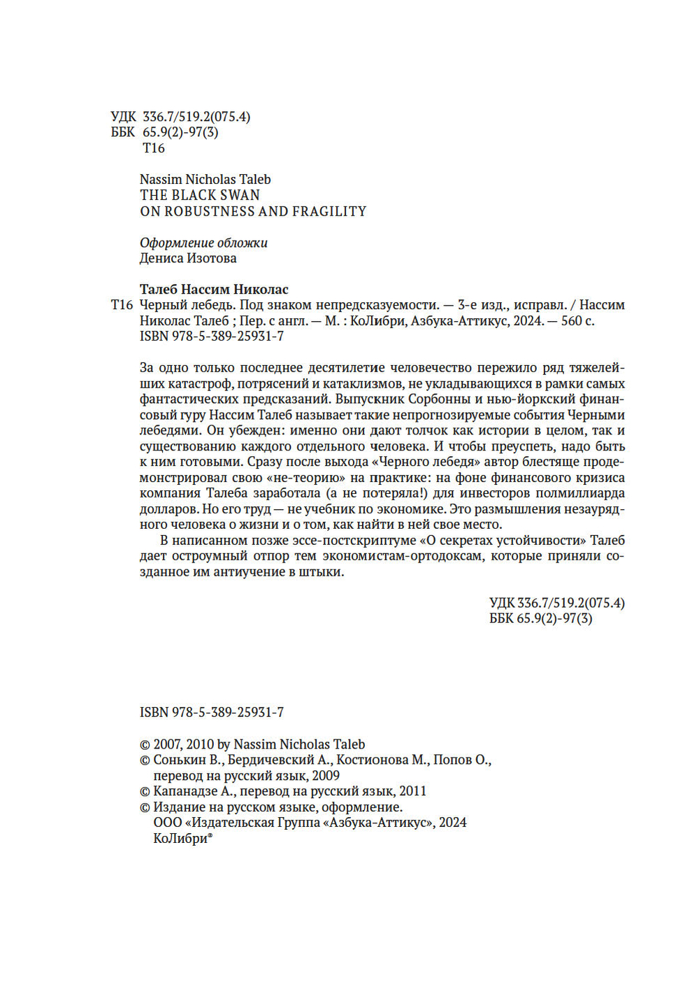 | Название в оригинале | The Black Swan: The Impact of the Highly Improbable. 2nd revised edition |