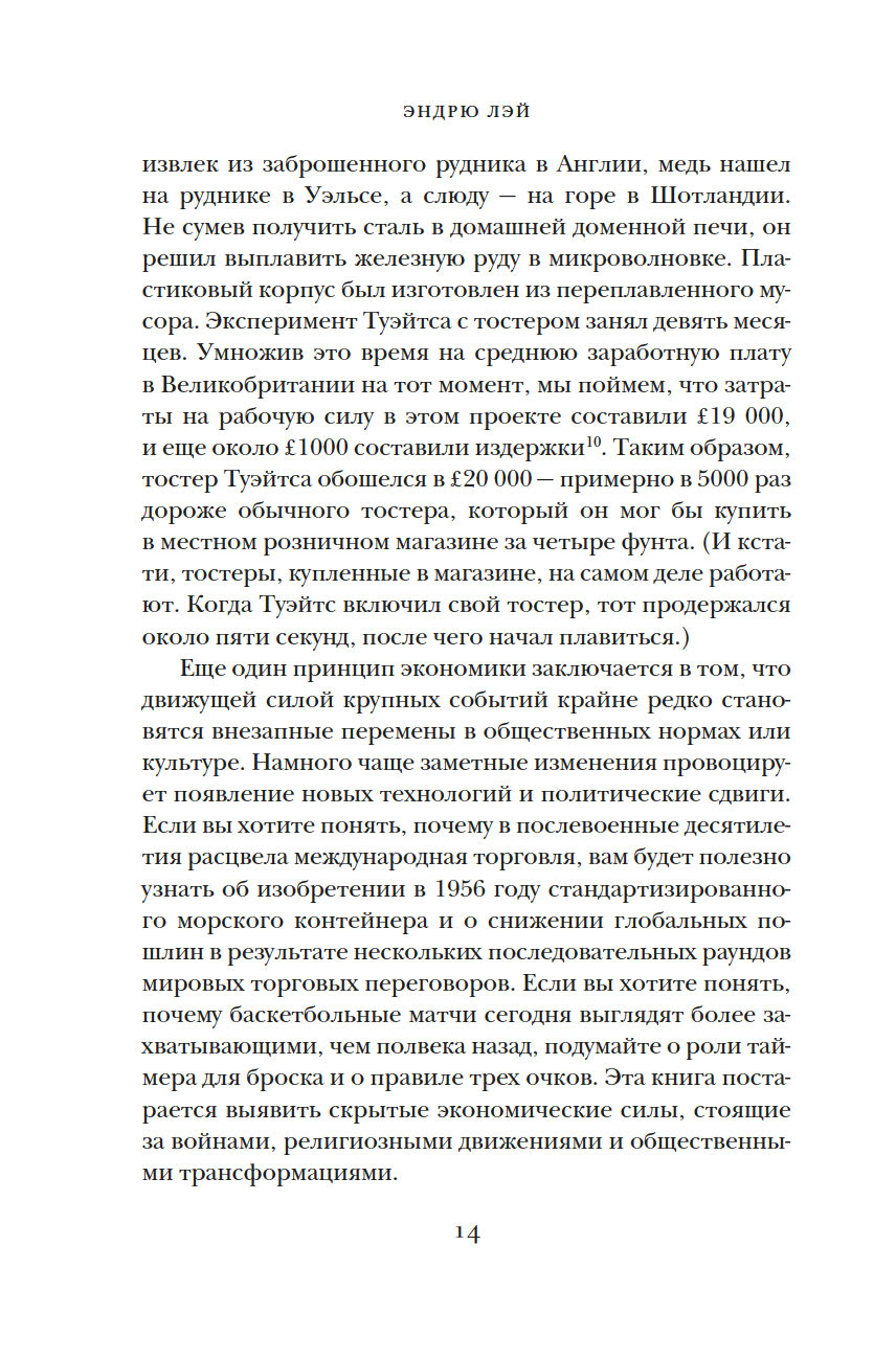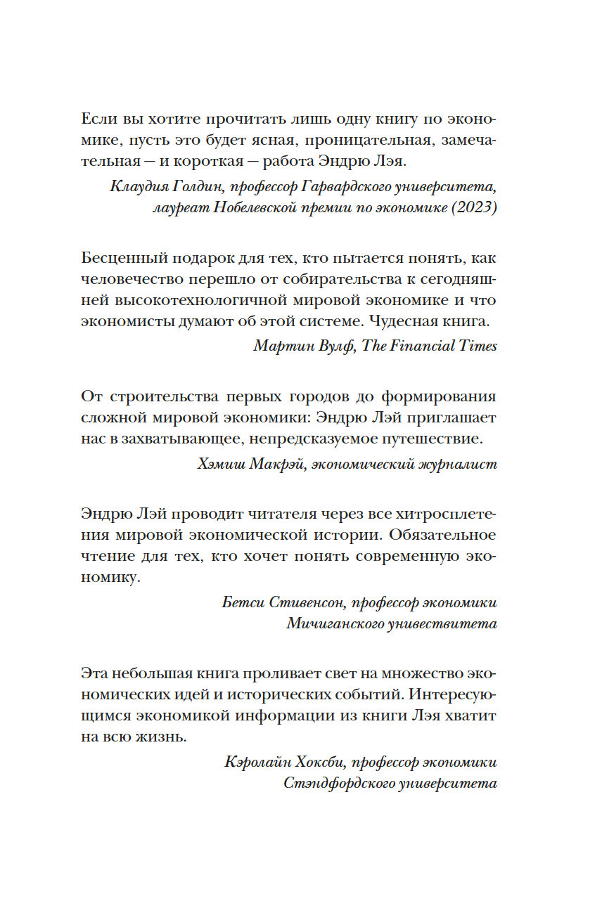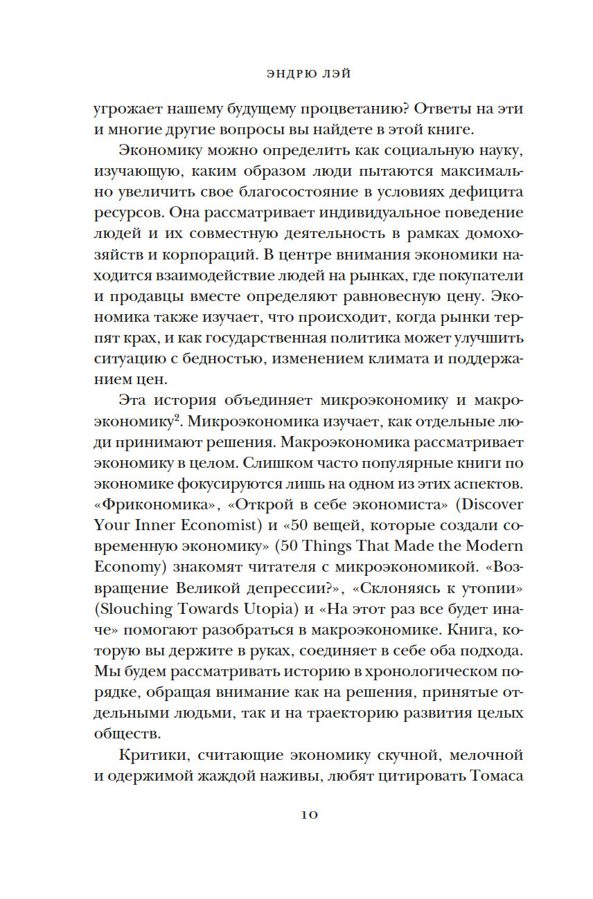 В книге профессора Гарварда Эндрю Лэя история экономики удивительным образом переплетена с современностью: европейская колонизация и глобальное потепление, богатейшие члены семейства Медичи и искусственный интеллект, изобретение денег и "невидимая рука рынка". Какие экономические системы существовали в разные эпохи? Как капитализм повлиял на гендерное неравенство? В чем отличие экономик Запада и Востока? Лэй увлекательно и лаконично рассказывает о важнейших страницах в истории экономики и о тех глобальных вызовах, перед которыми стоит человечество в XXI веке.