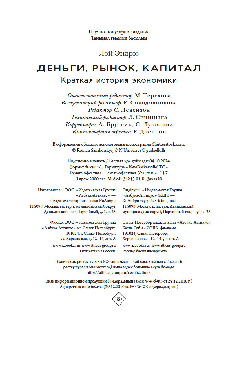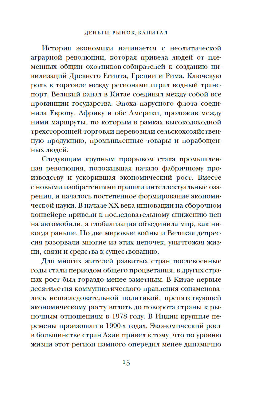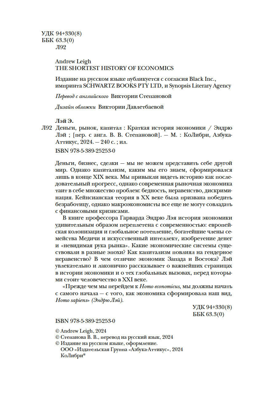 В книге профессора Гарварда Эндрю Лэя история экономики удивительным образом переплетена с современностью: европейская колонизация и глобальное потепление, богатейшие члены семейства Медичи и искусственный интеллект, изобретение денег и "невидимая рука рынка". Какие экономические системы существовали в разные эпохи? Как капитализм повлиял на гендерное неравенство? В чем отличие экономик Запада и Востока? Лэй увлекательно и лаконично рассказывает о важнейших страницах в истории экономики и о тех глобальных вызовах, перед которыми стоит человечество в XXI веке.