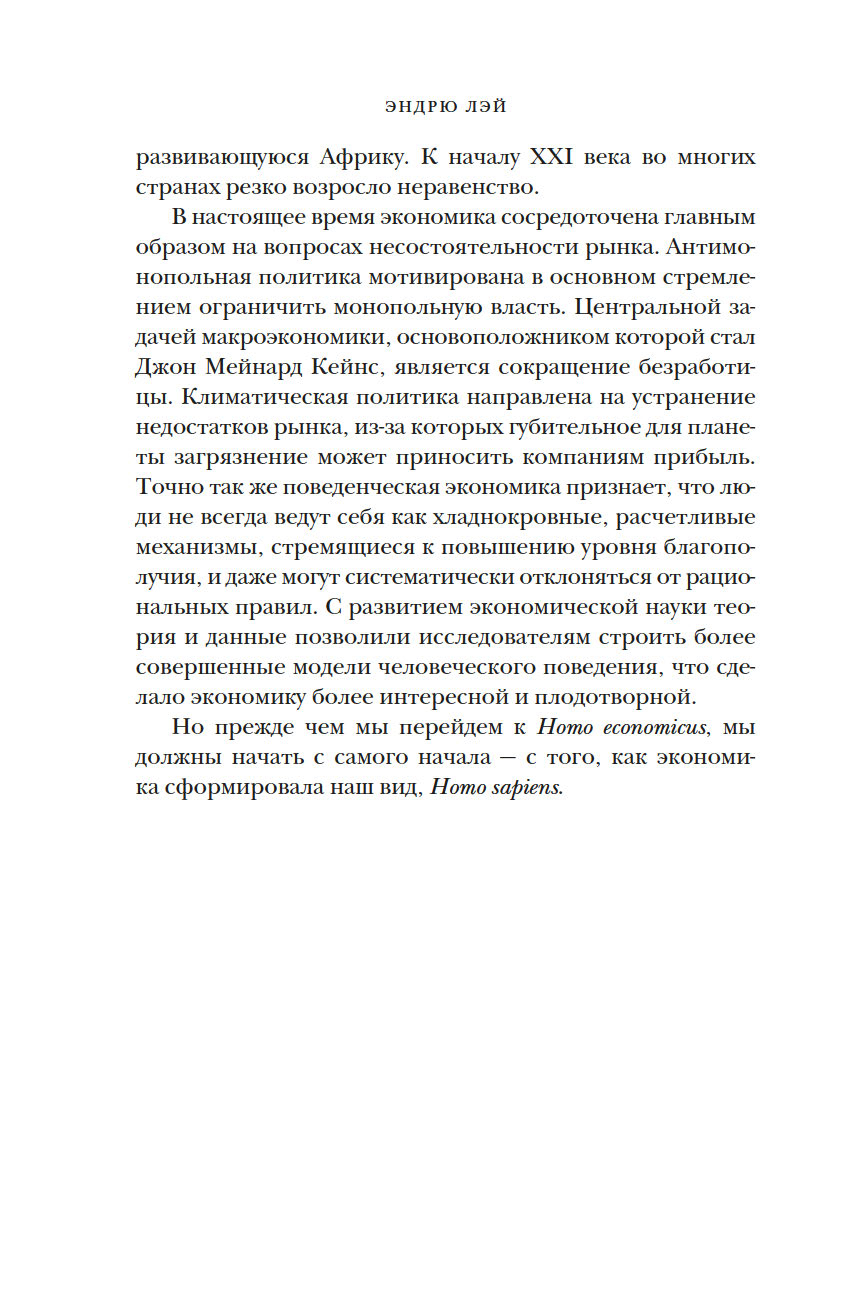 "Прежде чем мы перейдем к Homo economicus, мы должны начать с самого начала – с того, как экономика сформировала наш вид, Homo sapiens" (Эндрю Лэй).