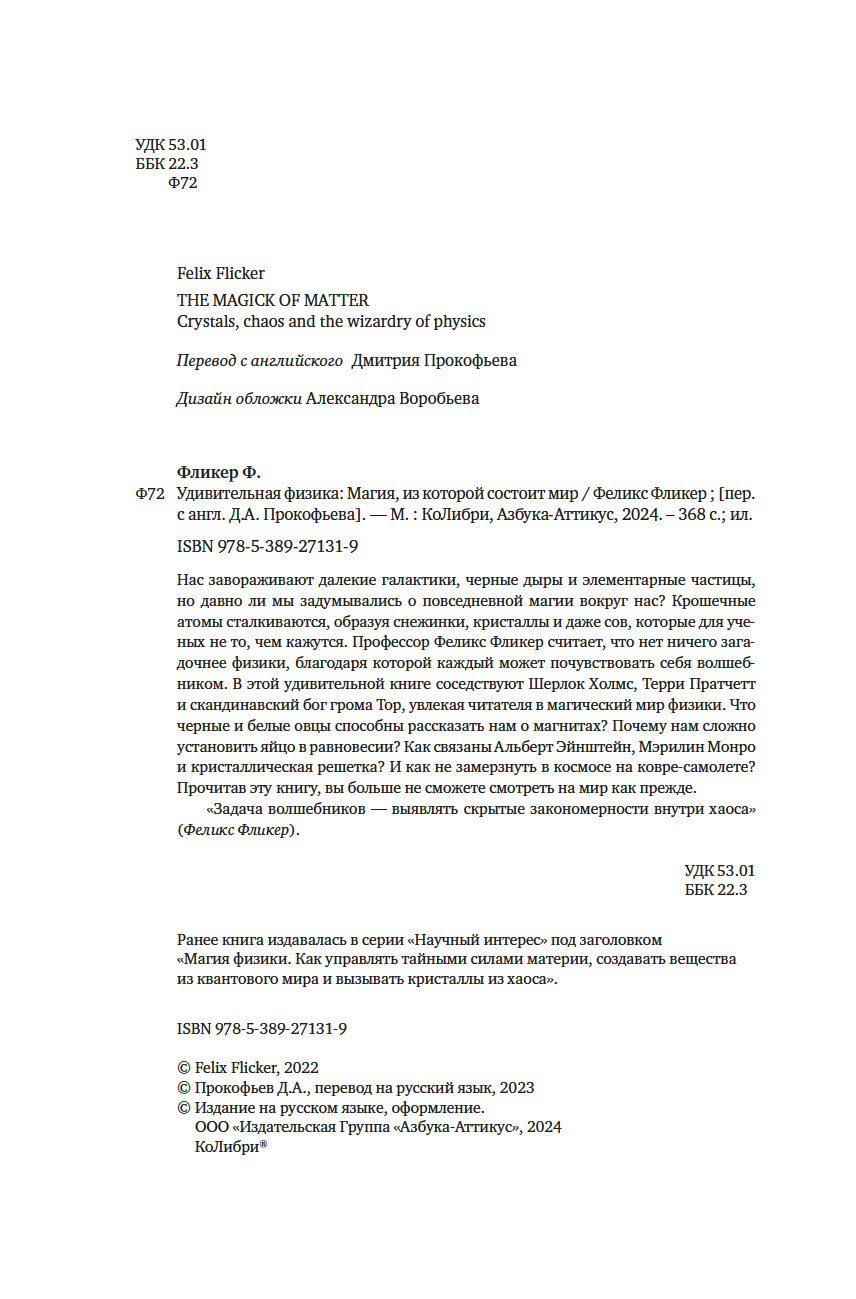 Ранее книга издавалась в серии "Научный интерес" под заголовком "Магия физики. Как управлять тайными силами материи, создавать вещества из квантового мира и вызывать кристаллы из хаоса".