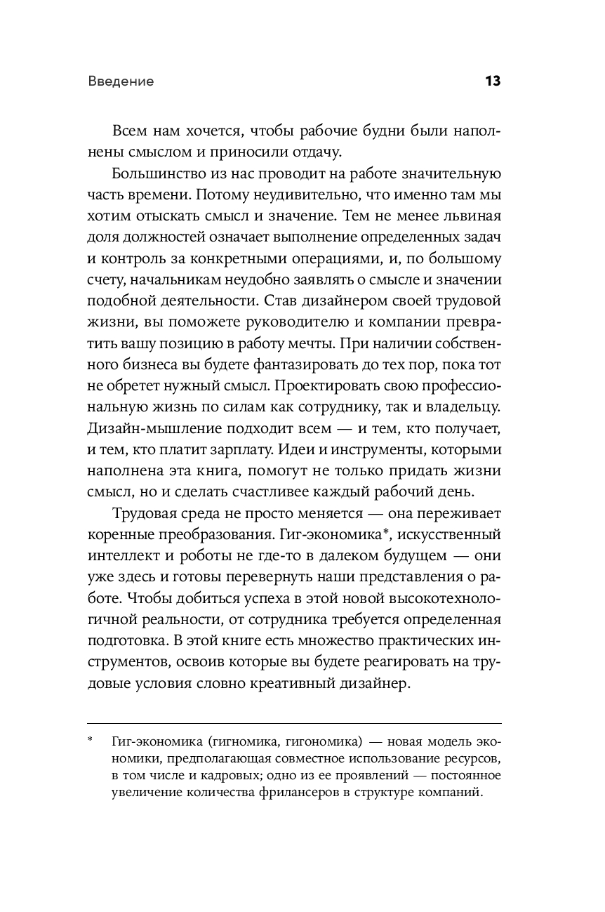 Мы проводим на работе годы жизни и хотим, чтобы это время было наполнено комфортом, а наша деятельность приносила хорошие плоды. Если мы не видим смысла в том, что делаем каждый день, то работаем спустя рукава и прокрастинируем. Вскоре бессмысленная работа начинает негативно сказываться на нашей карьере, психологическом состоянии и даже здоровье. Можно ли преодолеть скуку и получать удовольствие от рабочих будней? Преподаватели Стэнфордского университета и авторы бестселлера "Дизайн вашей жизни" Билл Бернетт и Дэйв Эванс считают, что этого можно достичь с помощью дизайн-мышления.