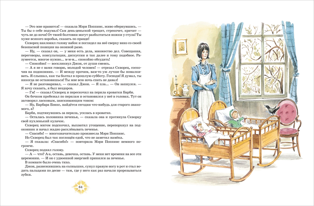 И разумеется, стоило Мэри Поппинс появиться в Доме Номер Семнадцать по Вишневому переулку, как жизнь семейства Бэнкс чудесным образом переменилась. История о самой удивительной няне на свете вошла в золотой фонд зарубежной детской литературы и легла в основу множества фильмов, сериалов и театральных постановок. Ее герои покажут, что такое настоящая доброта, дружба и этикет, а также помогут привить любовь к чтению. "Мери Поппинс" любят родители и дети по всему миру. Произведение входит в школьную программу для начальных классов и станет прекрасным подарком дошкольнику на выпуск из детского сада или младшекласснику.