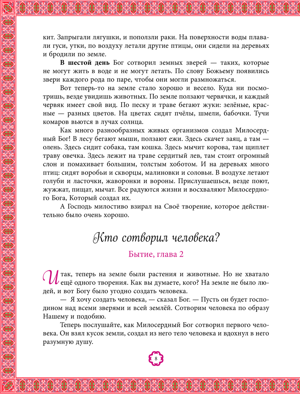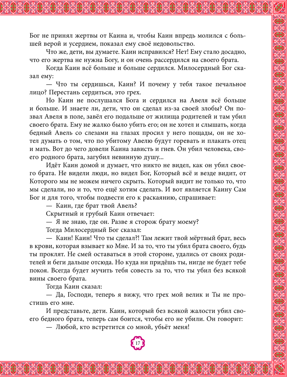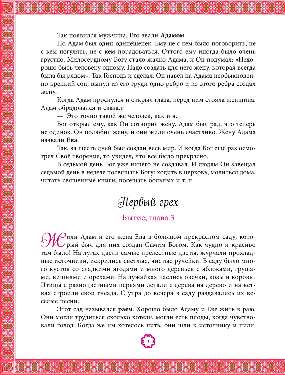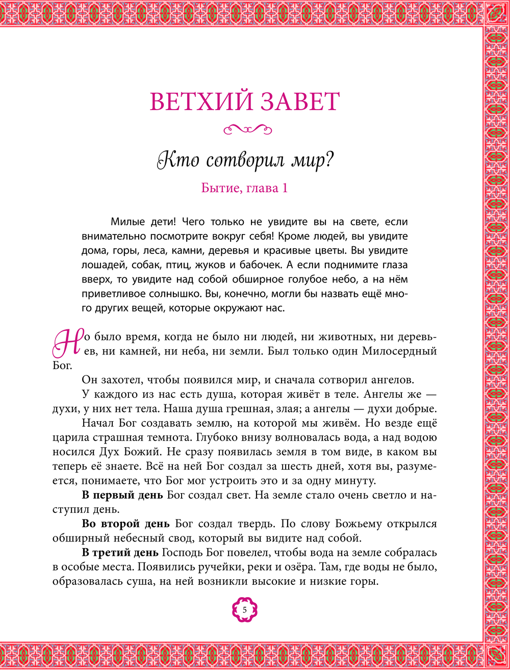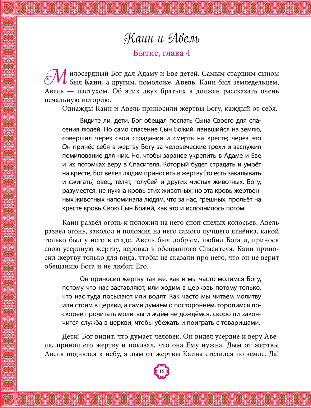 "Детская Библия" знакомит юных читателей с важнейшими событиями из Священного Писания. Её автор – протоиерей Александр Соколов. В конце XΙX века он поэтично и красочно пересказал библейские сюжеты, написав "Священные истории в простых рассказах для чтения дома и в школе". Многие поколения детей знакомились с героями Библии, их судьбами, знаменитыми подвигами, победами и поражениями. Мудрый автор заботливо беседует с читателями, поясняя – где добро, а где зло, кто поступил честно, а кто совершил подлость. Книга много раз успешно переиздавалась. Она включает 118 сюжетов из Ветхого Завета, 110 сюжетов из Нового Завета и 14 притч, рассказанных Иисусом Христом. Цветные динамичные иллюстрации дополняют истории и возбуждают интерес.