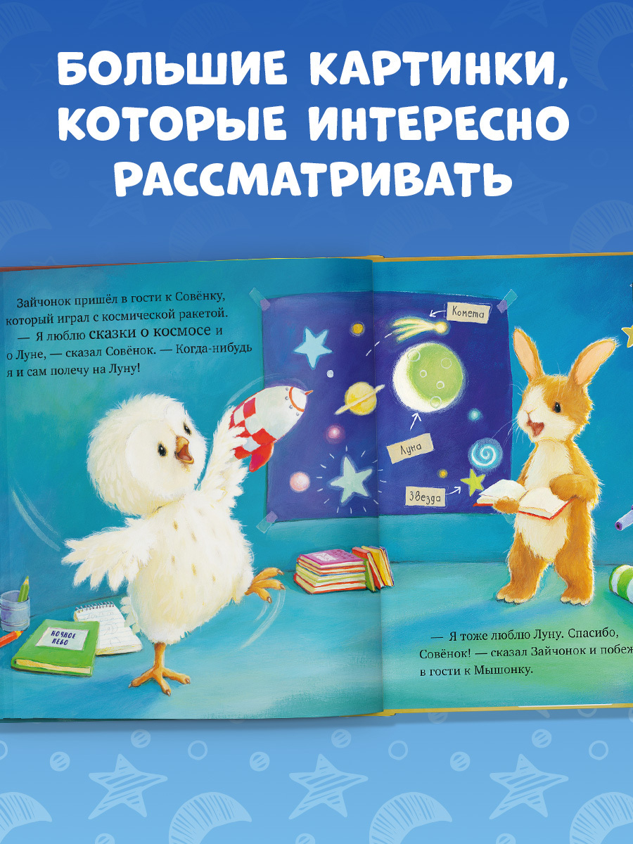 "Лучшая сказка на ночь для Зайчонка" отлично подходит для чтения перед сном: в книге большие нежные иллюстрации, которые малышу будет интересно разглядывать, пока родитель читает текст, и забавная история с "засыпательной" концовкой.