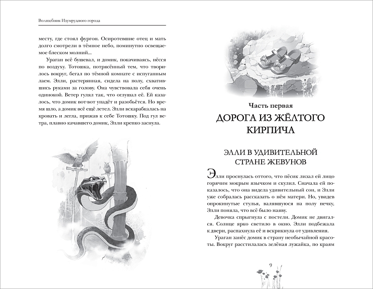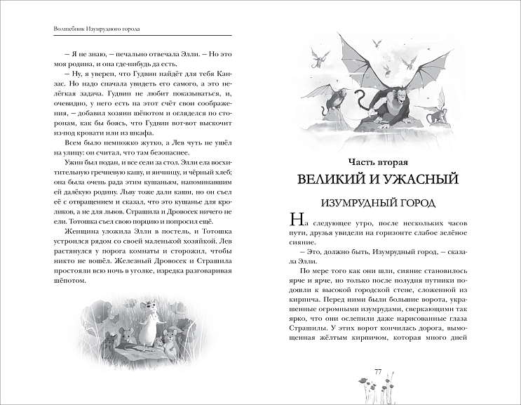 Но однажды ураган унёс её домик далеко-далеко от родных мест, и теперь, чтобы вернуться домой, ей предстоит отправиться в Изумрудный город – да не одной, а с верным псом Тотошкой, Страшилой, Железным Дровосеком и Трусливым Львом.