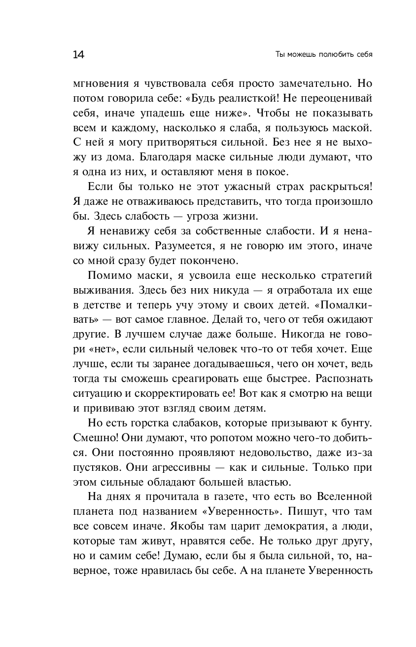 Стефани Шталь, психотерапевт № 1 в Германии и автор бестселлеров по психологии с мировым именем, помогает обрести уверенность в себе и раскрывает главный секрет здоровой самооценки: уверенный в себе человек принимает себя вместе со своими слабостями.