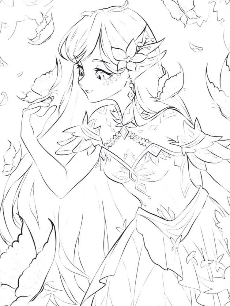 Изящные иллюстрации, декоративные детали и элементы для раскрашивания карандашами или фломастерами. Эта раскраска станет отличным подарком ребёнку, увлечённому аниме, мангой и рисованием.