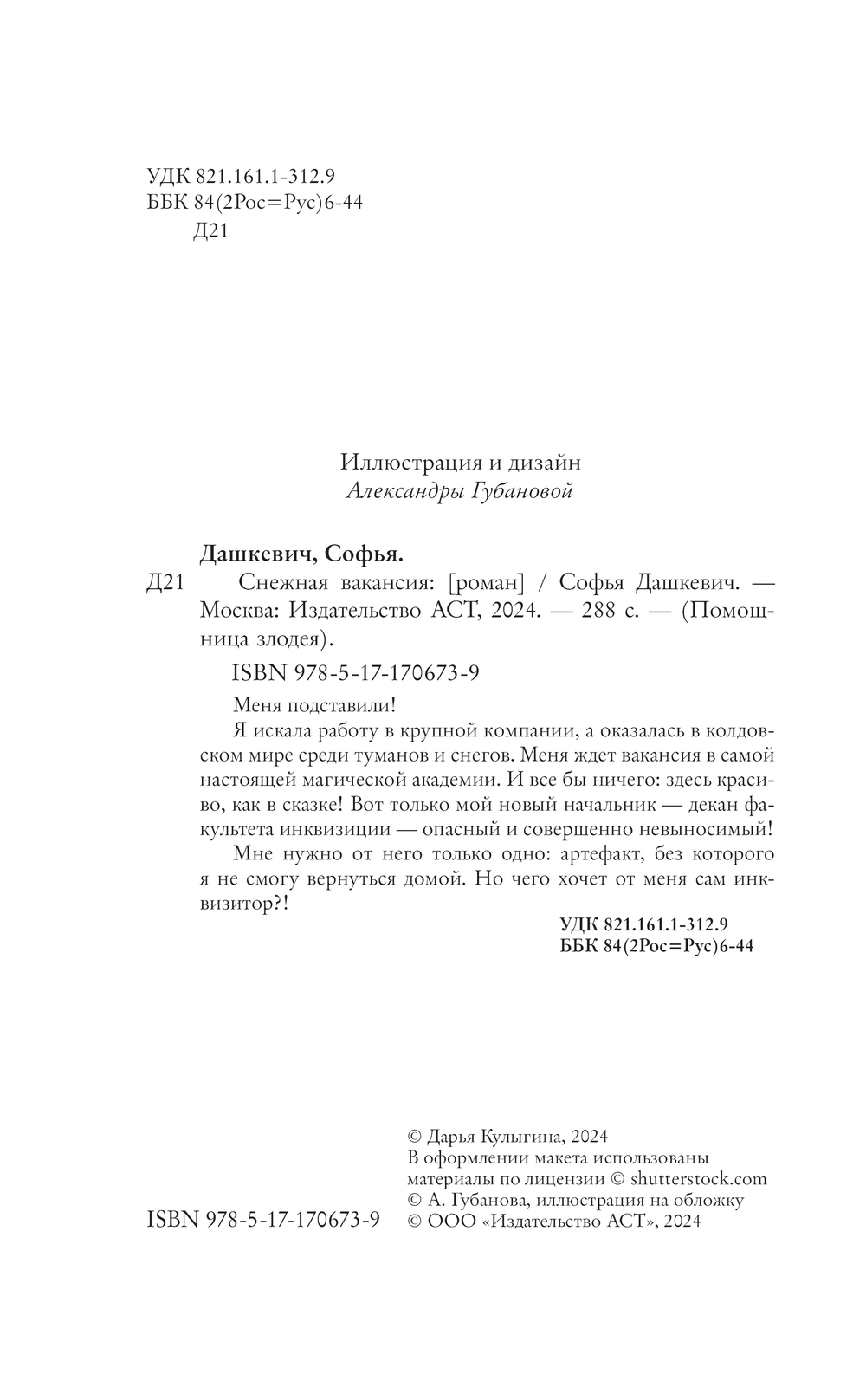 Я искала работу в крупной компании, а оказалась в колдовском мире среди туманов и снегов. Меня ждет вакансия в самой настоящей магической академии. И все бы ничего: здесь красиво, как в сказке! Вот только мой новый начальник – декан факультета инквизиции – опасный и совершенно невыносимый!